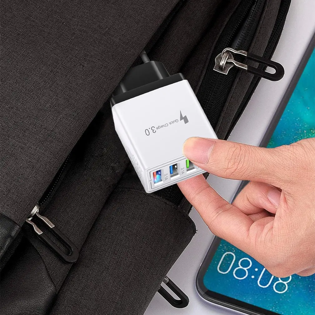 Comprar Cargador rápido de viaje con 4 puertos USB, 3.1A, inducción de cabeza, para iPhone 12, Samsung, Xiaomi, teléfono móvil