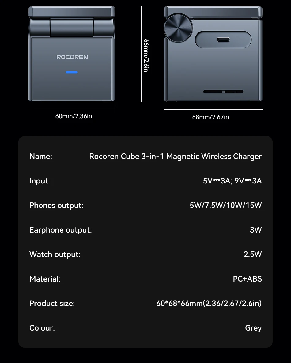 El cargador Rocoren Magsafe garantiza una carga perfecta para dispositivos iPhone y Samsung, ofreciendo una conexión segura y estable.