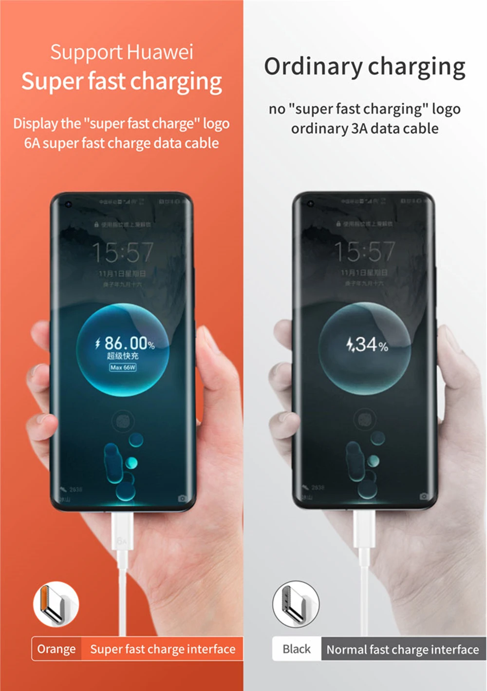 Cargador de pared súper rápido 6A 66W para Huawei Mate 40 50 60 Pro P50 P60 Pura 70 Pro Nova 9 10 11 12i 12S Honor 50 70 90 100 200 Lite Magic 3 4 5 Lite 6 Pro Cable de carga rápida USB tipo C 1m 1,5m 2m Adaptador de viaje con enchufe europeo