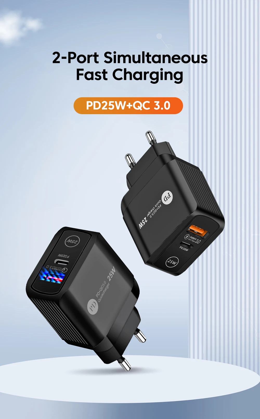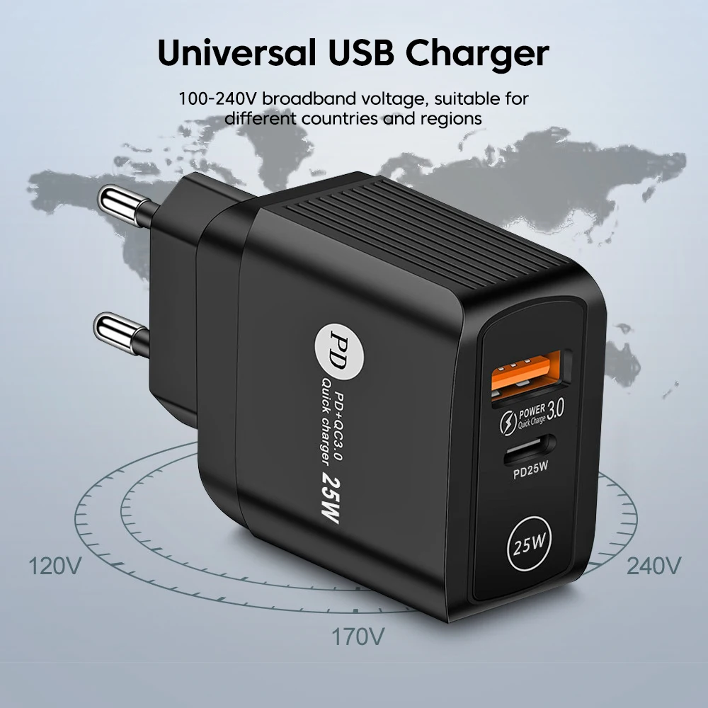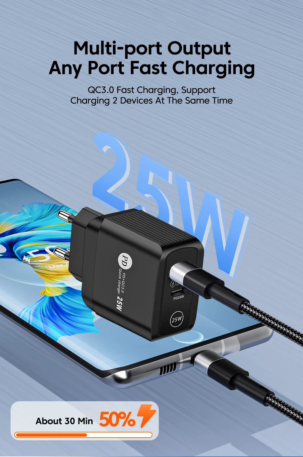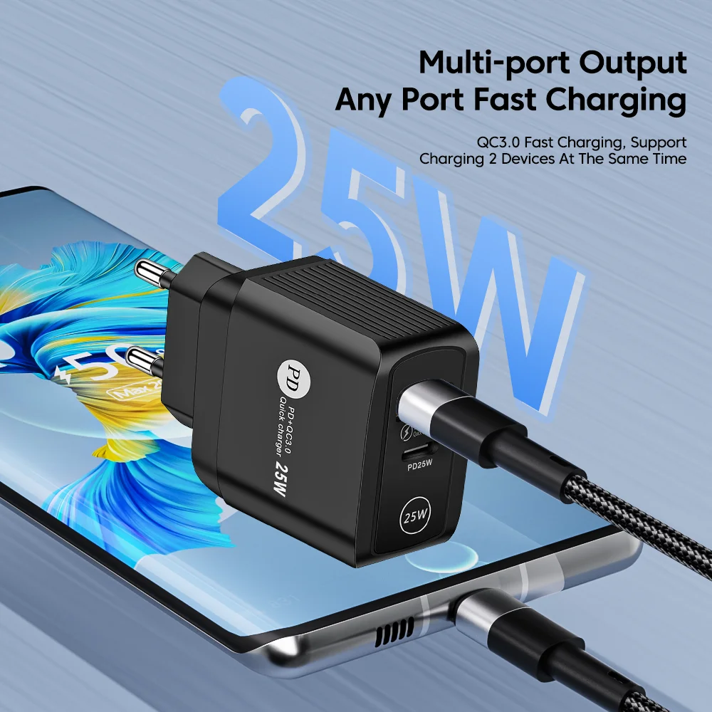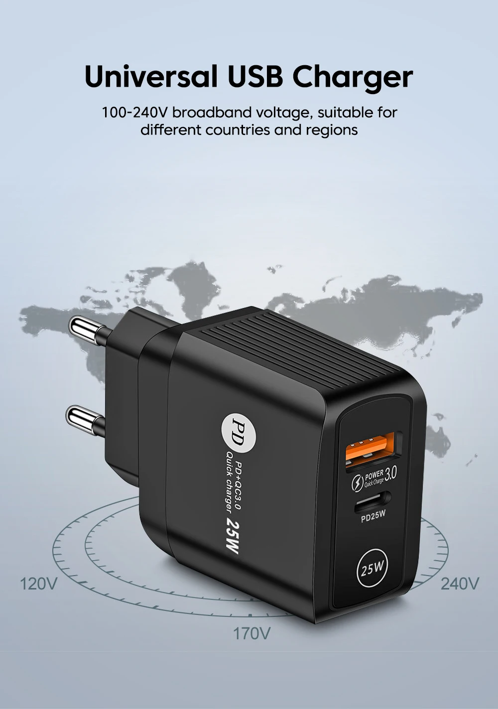 Cargador de teléfono de carga rápida tipo C, 25w, PD, 5A, puertos de la UE/EE. UU./Reino Unido, adaptadores para iPhone 14, 13, Samsung S22, S21, Huawei, Xiaomi, POCO Oneplus