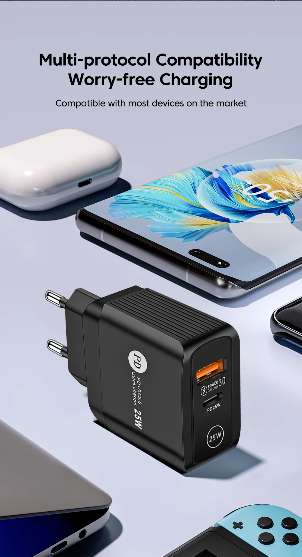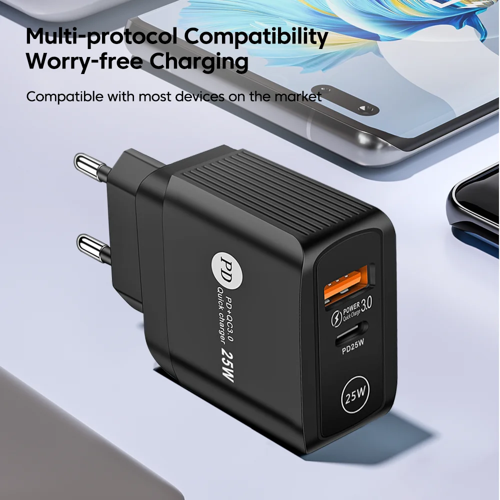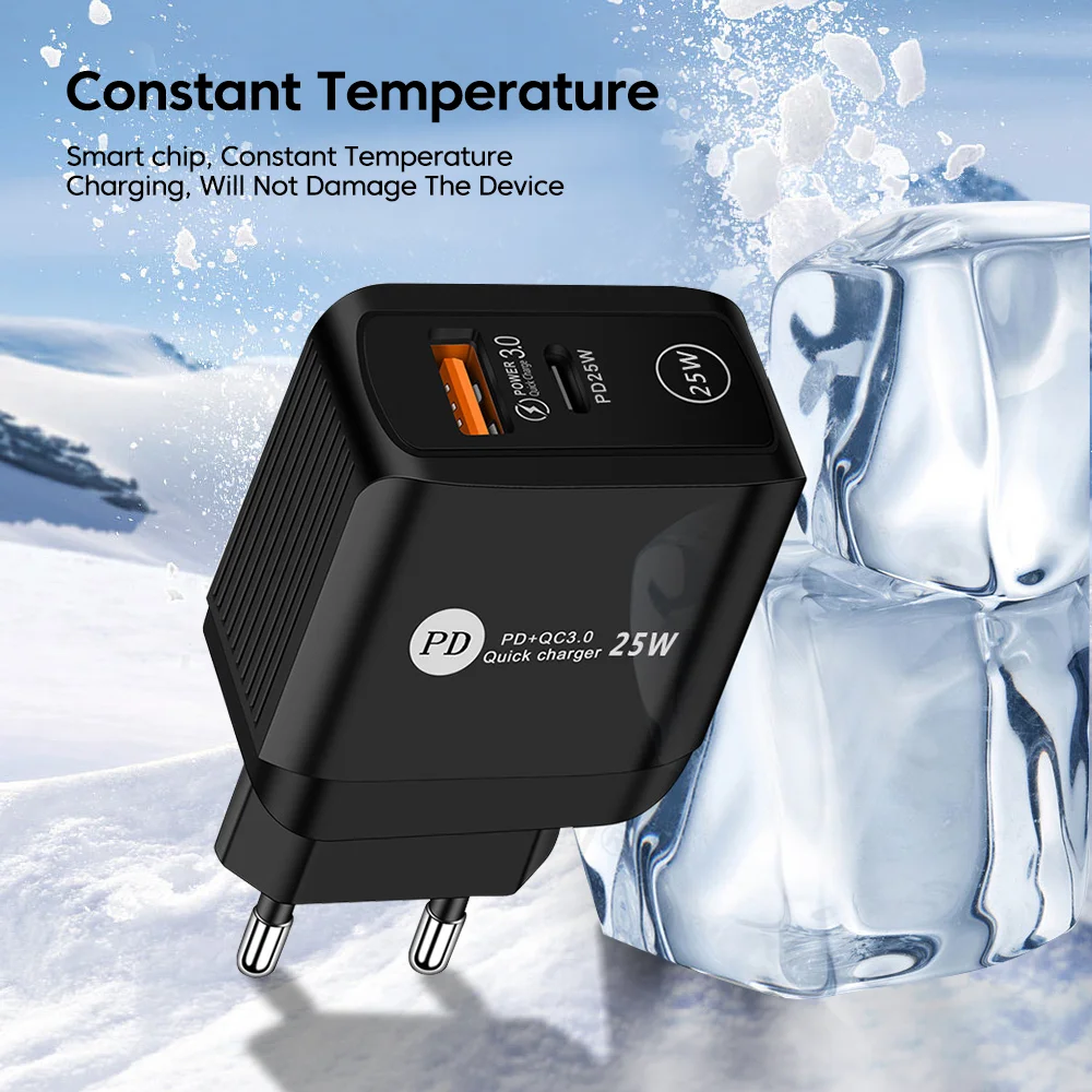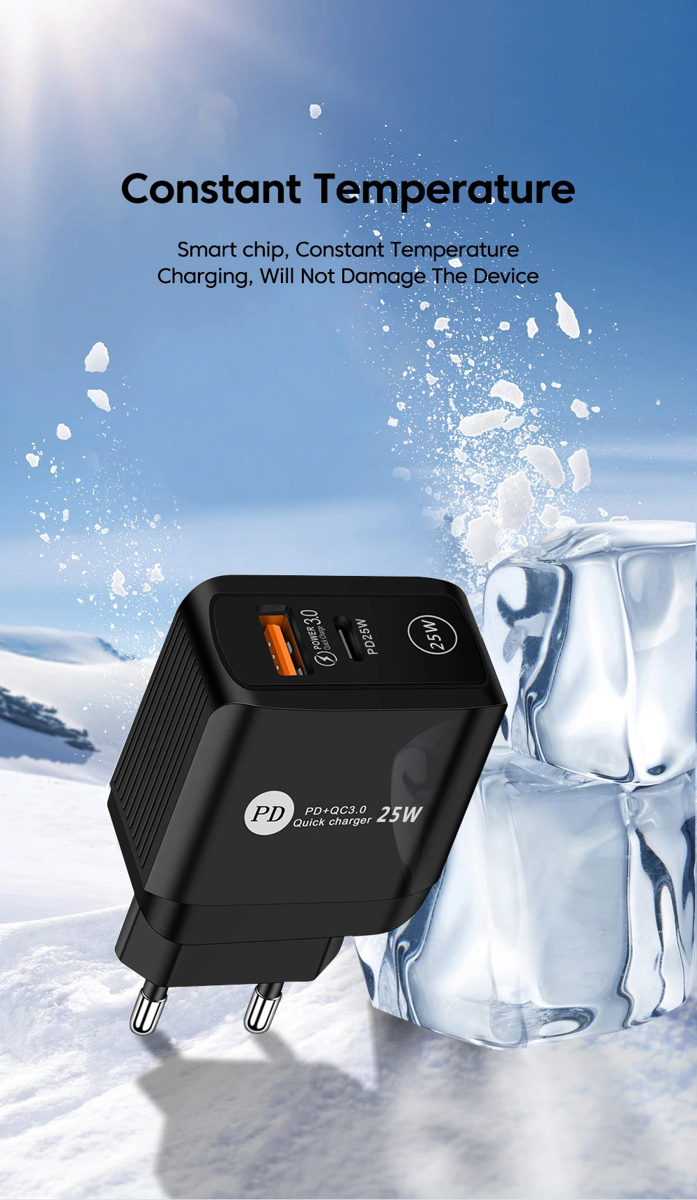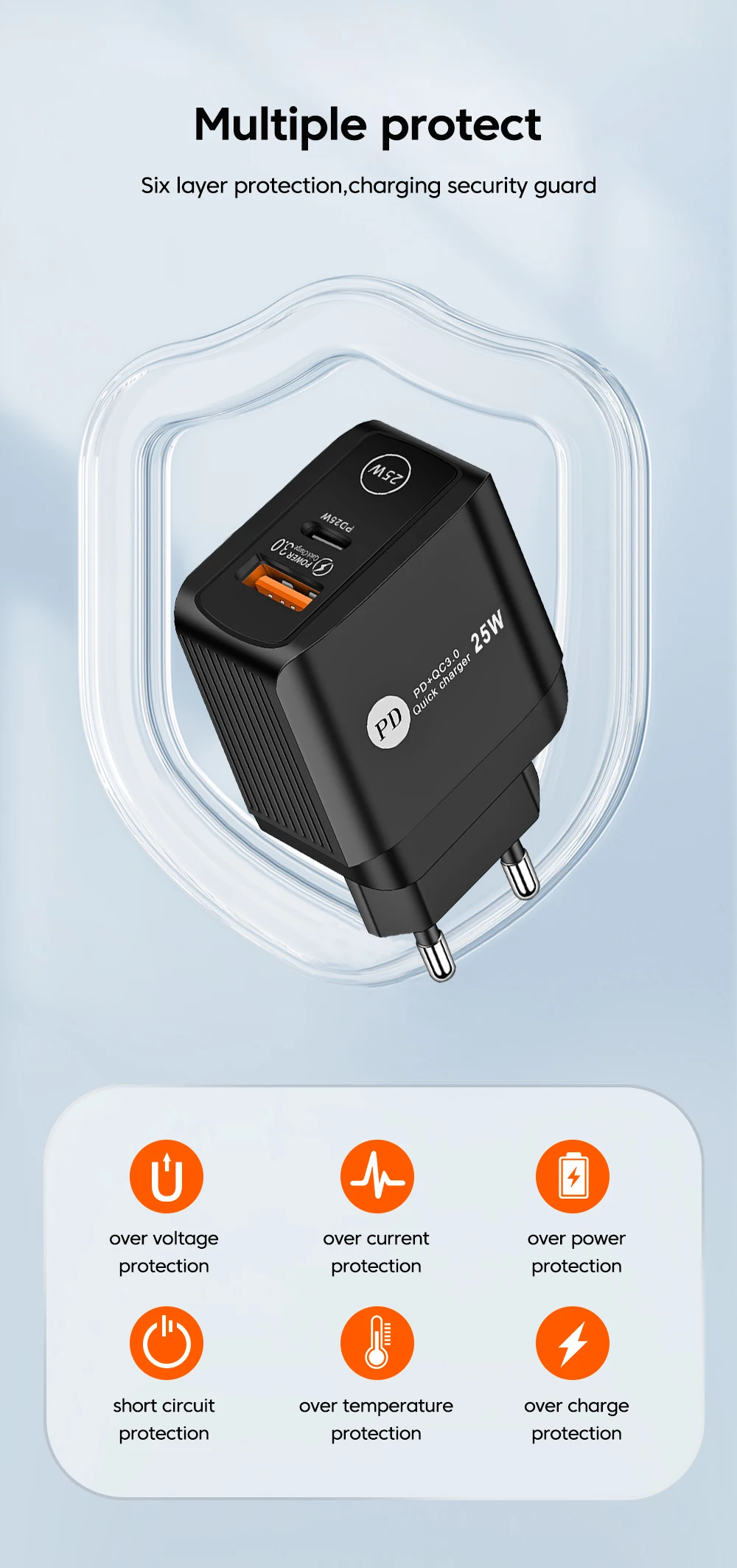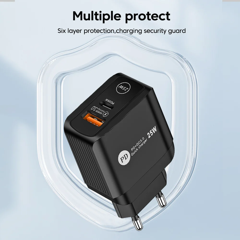 Cargador de teléfono de carga rápida tipo C, 25w, PD, 5A, puertos de la UE/EE. UU./Reino Unido, adaptadores para iPhone 14, 13, Samsung S22, S21, Huawei, Xiaomi, POCO Oneplus