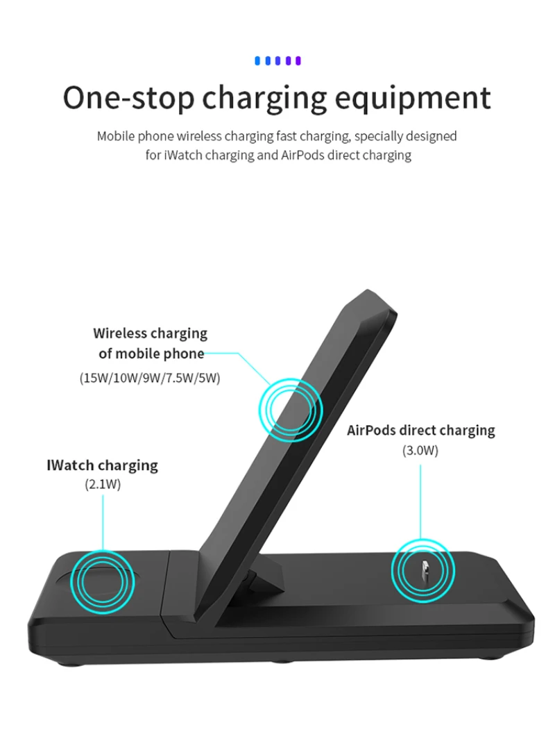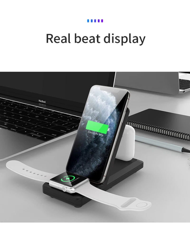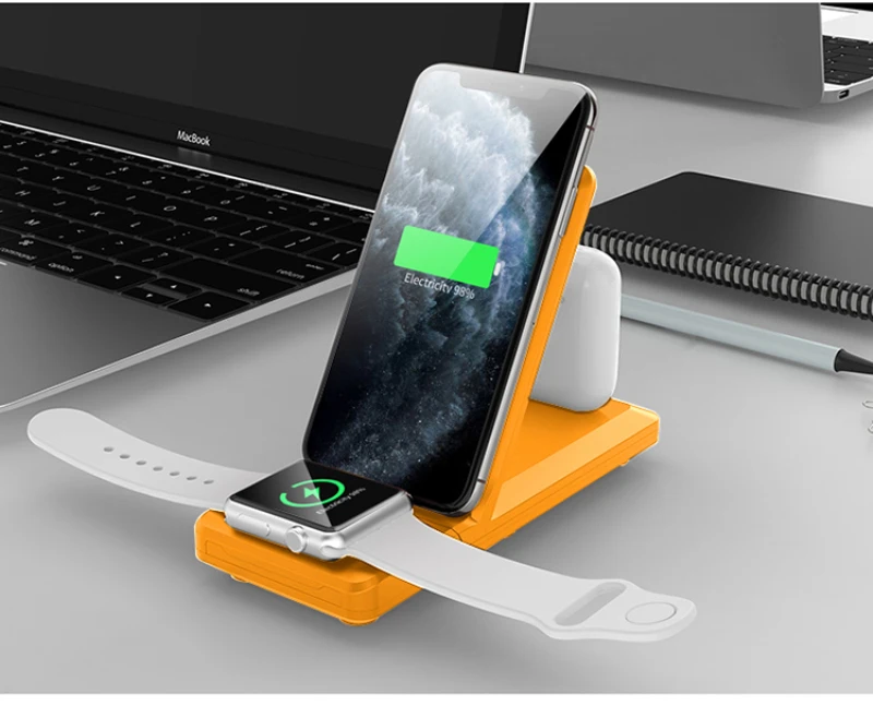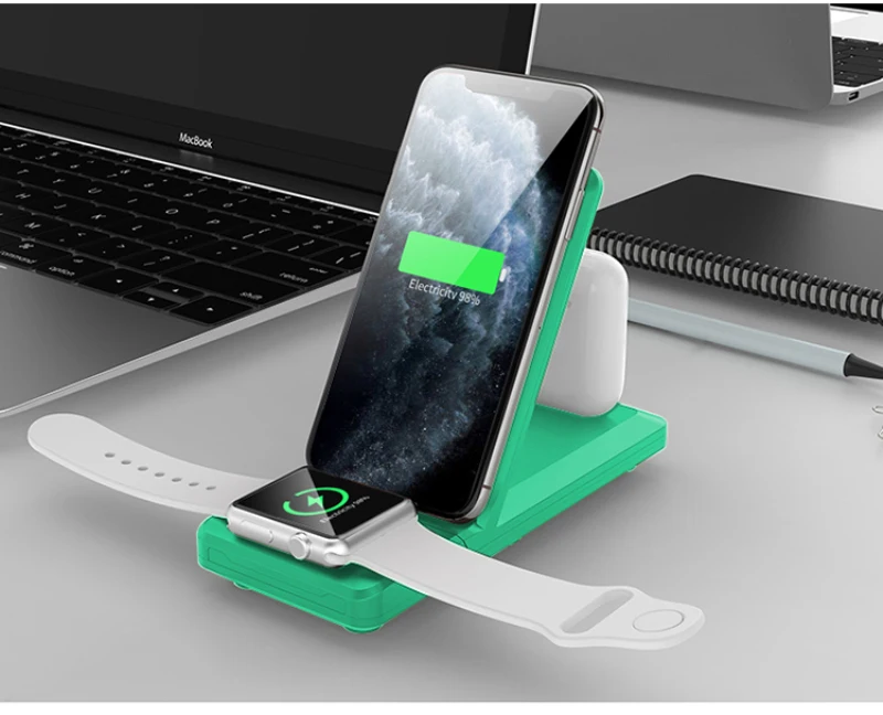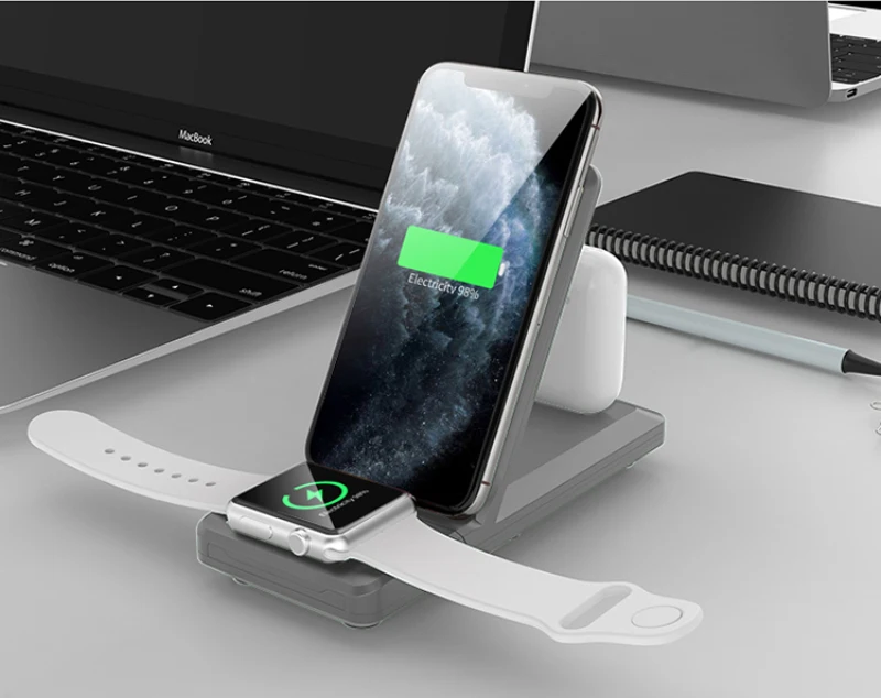 Cargador de teléfono móvil de carga rápida de 15W, cargador inalámbrico Qi 3 en 1 para iPhone12 Max 12 Mini iWatch 6 5 4 3 2 AirPods