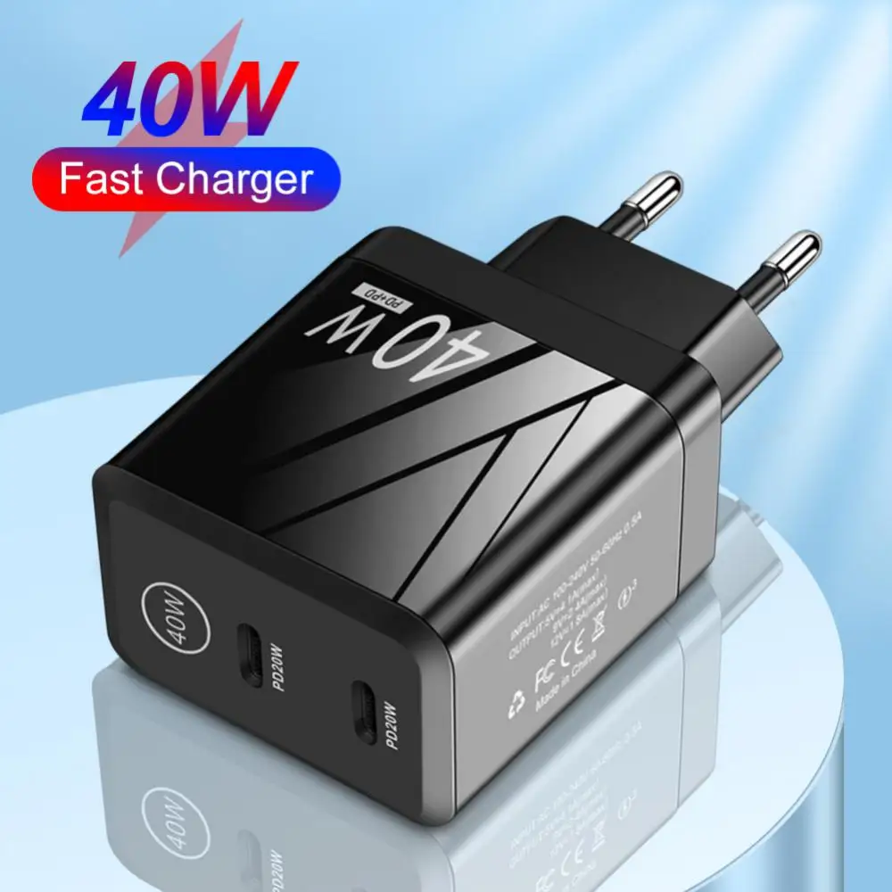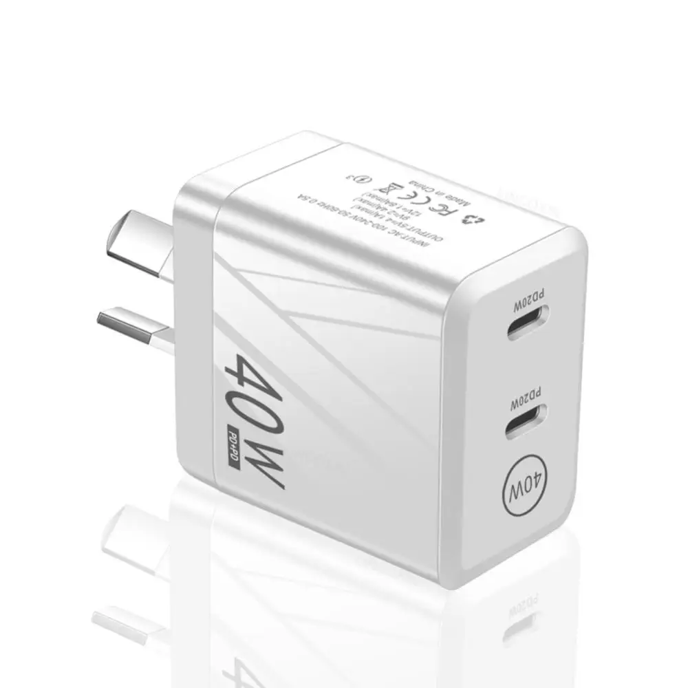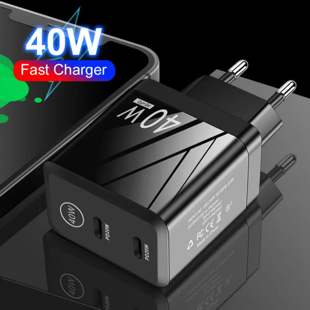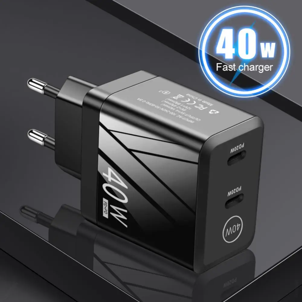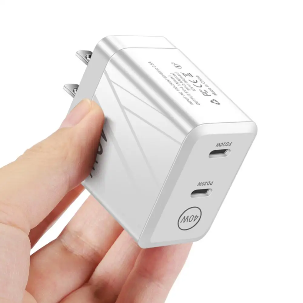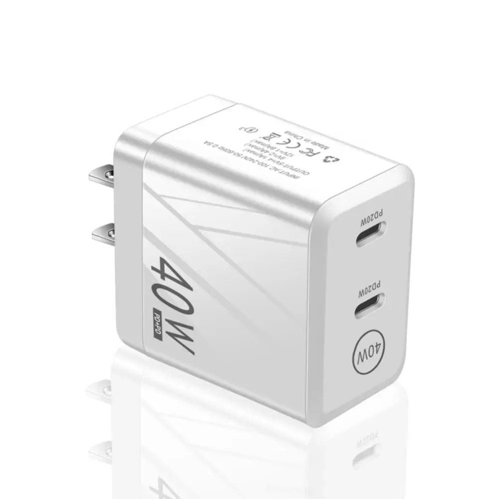 Cargador de teléfono móvil de carga rápida Dual PD 40W Tipo-c PD Adaptador de corriente de carga Flash de puerto dual para teléfono móvil Huawei