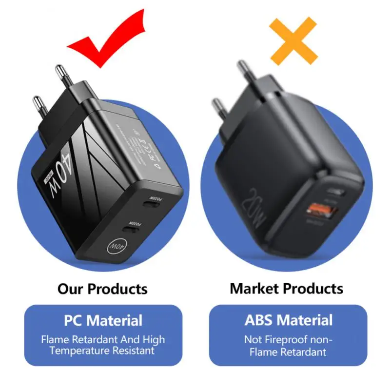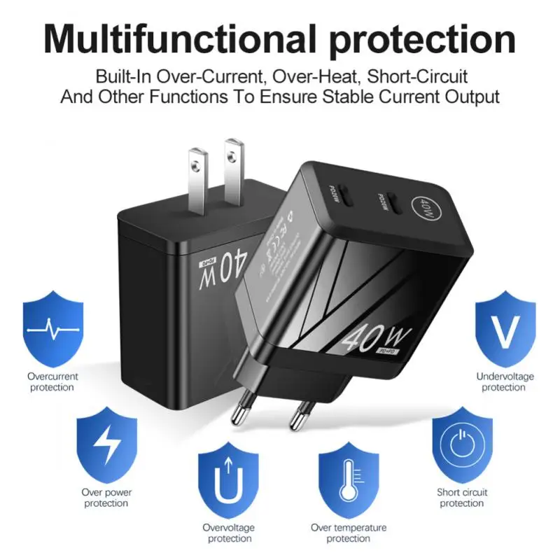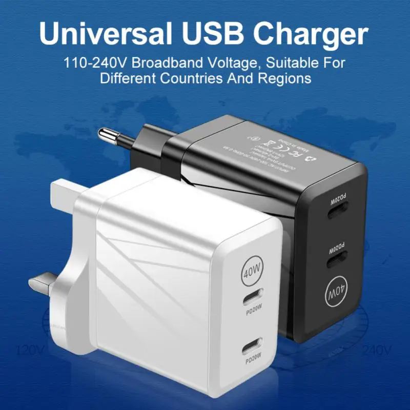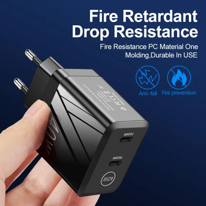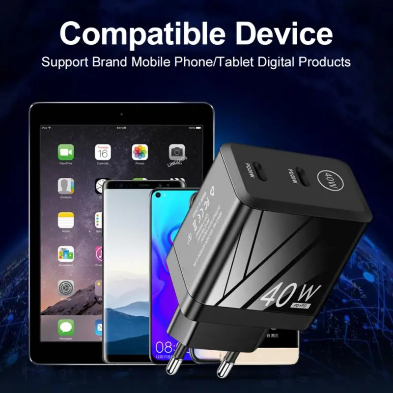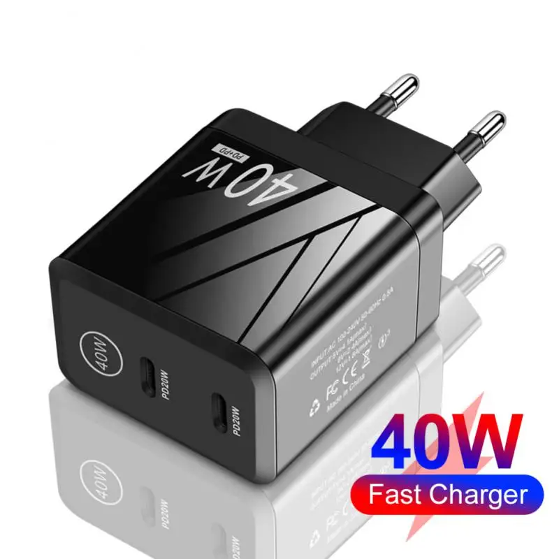 Cargador de teléfono móvil de carga rápida Dual PD 40W Tipo-c PD Adaptador de corriente de carga Flash de puerto dual para teléfono móvil Huawei