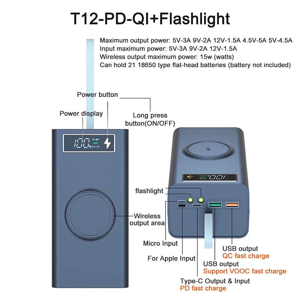 Potencia máxima de salida: 5V-3A 9V-2A 12V-1.5A 4,5 V-5A 5V-4.5A Potencia máxima de entrada: 5V-3A 9V-2A 12V-1.5A