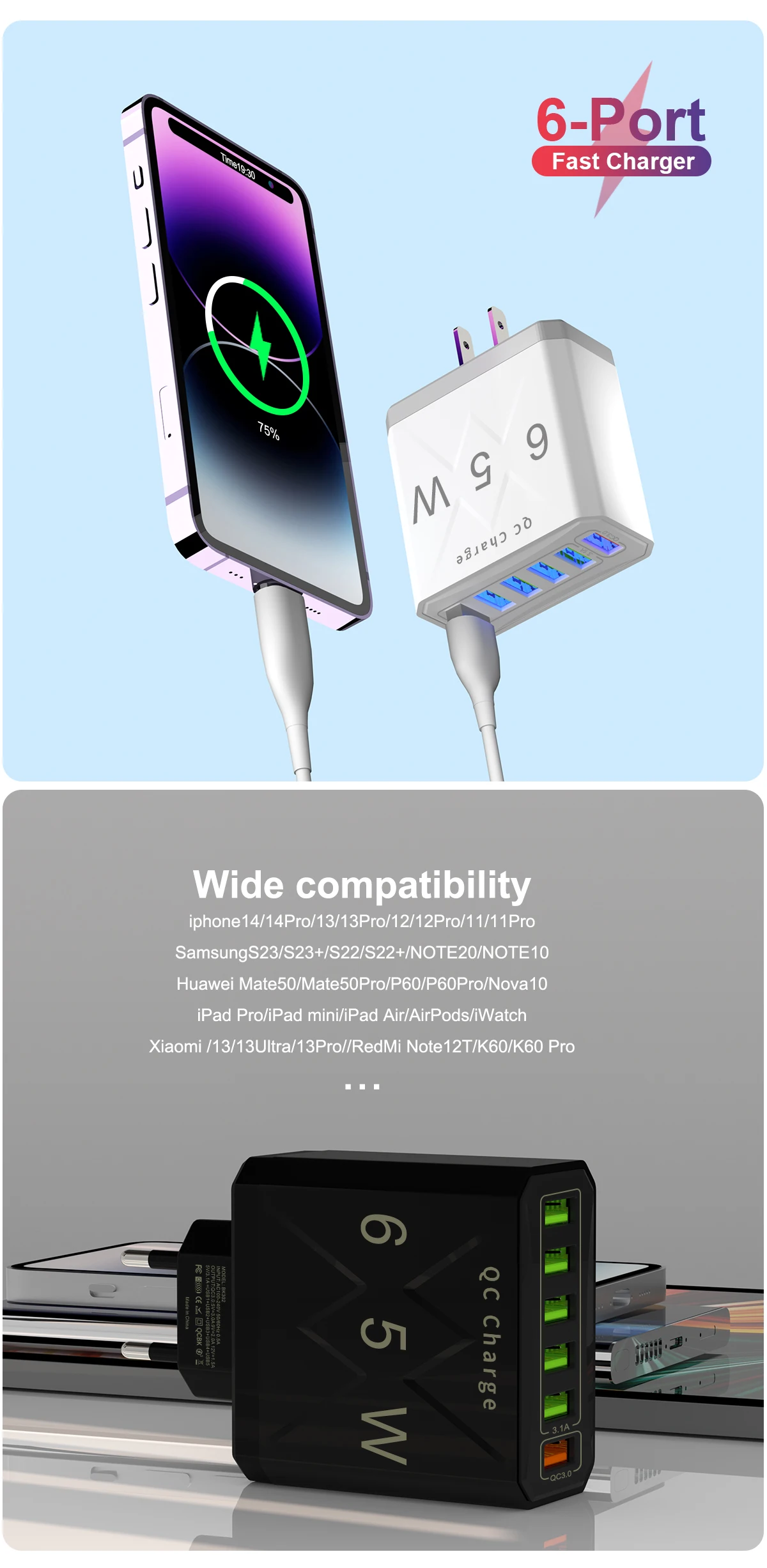• Adaptador de enchufe múltiple:Este cargador viene con 6 enchufes diferentes, lo que lo hace compatible con una amplia gama de dispositivos.