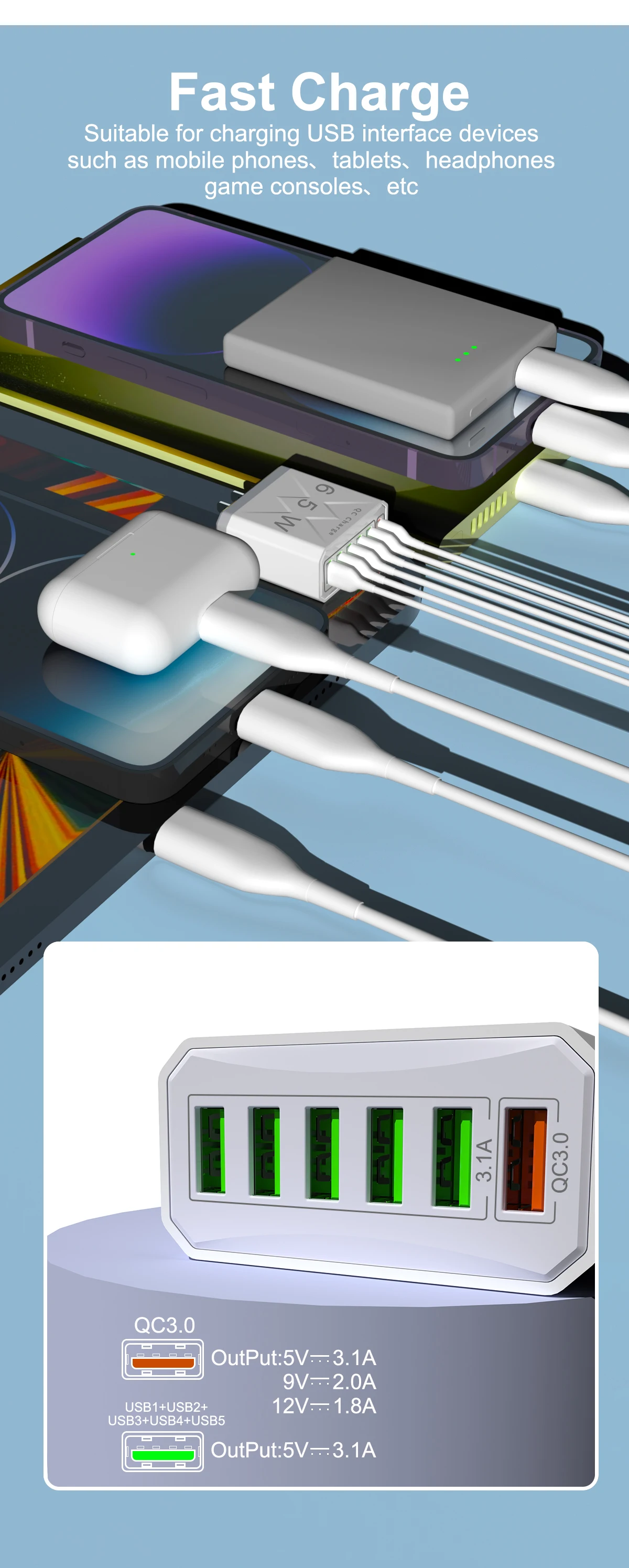 USB1 + USB2 + USB3 + USB4 + USB5 5V/3.1A