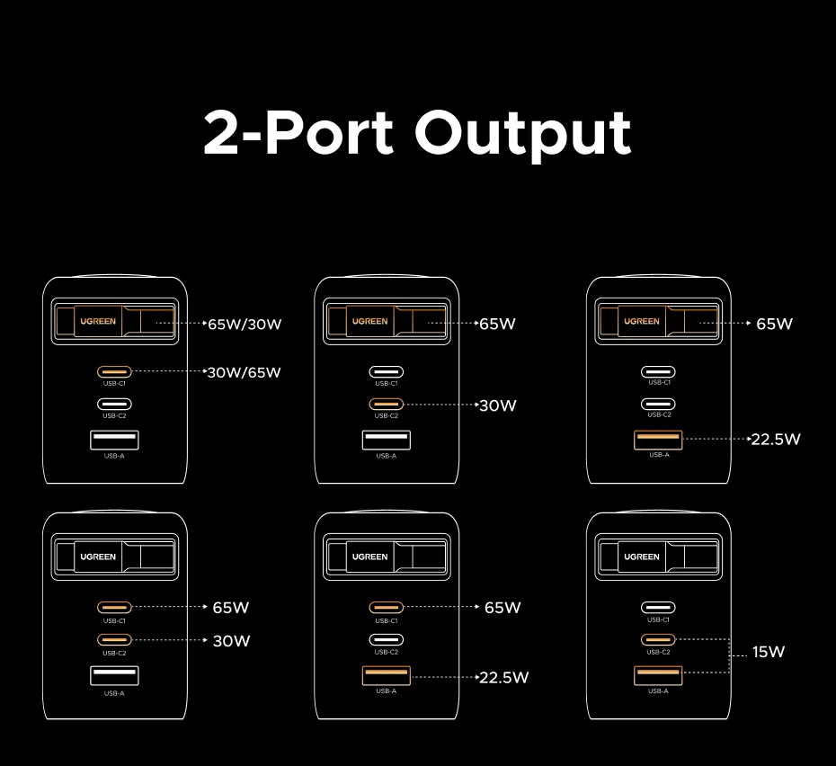 USB-C1: 5V/3A 9V/3A 12V/3A 15V/3A 20V/5A 100W máx.