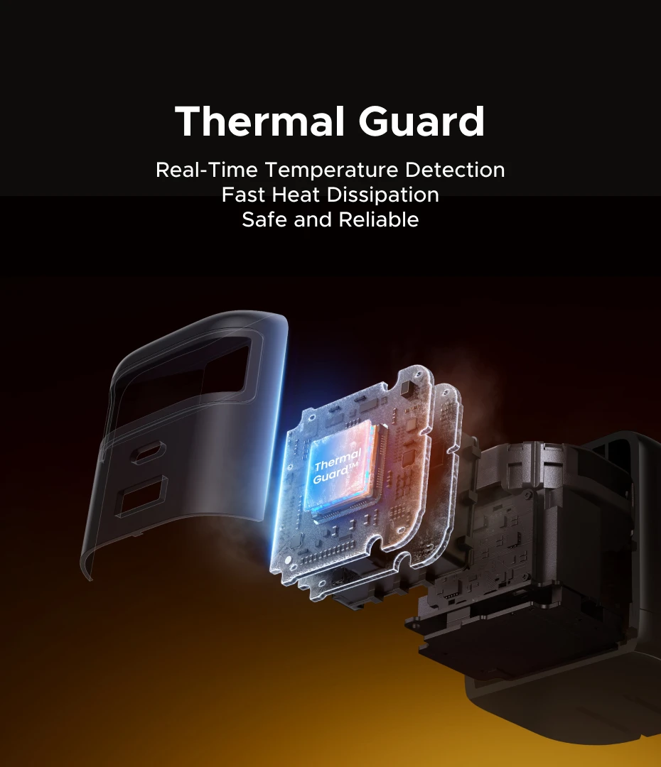 Detección de temperatura en tiempo real, rápida disipación del calor, segura y confiable.