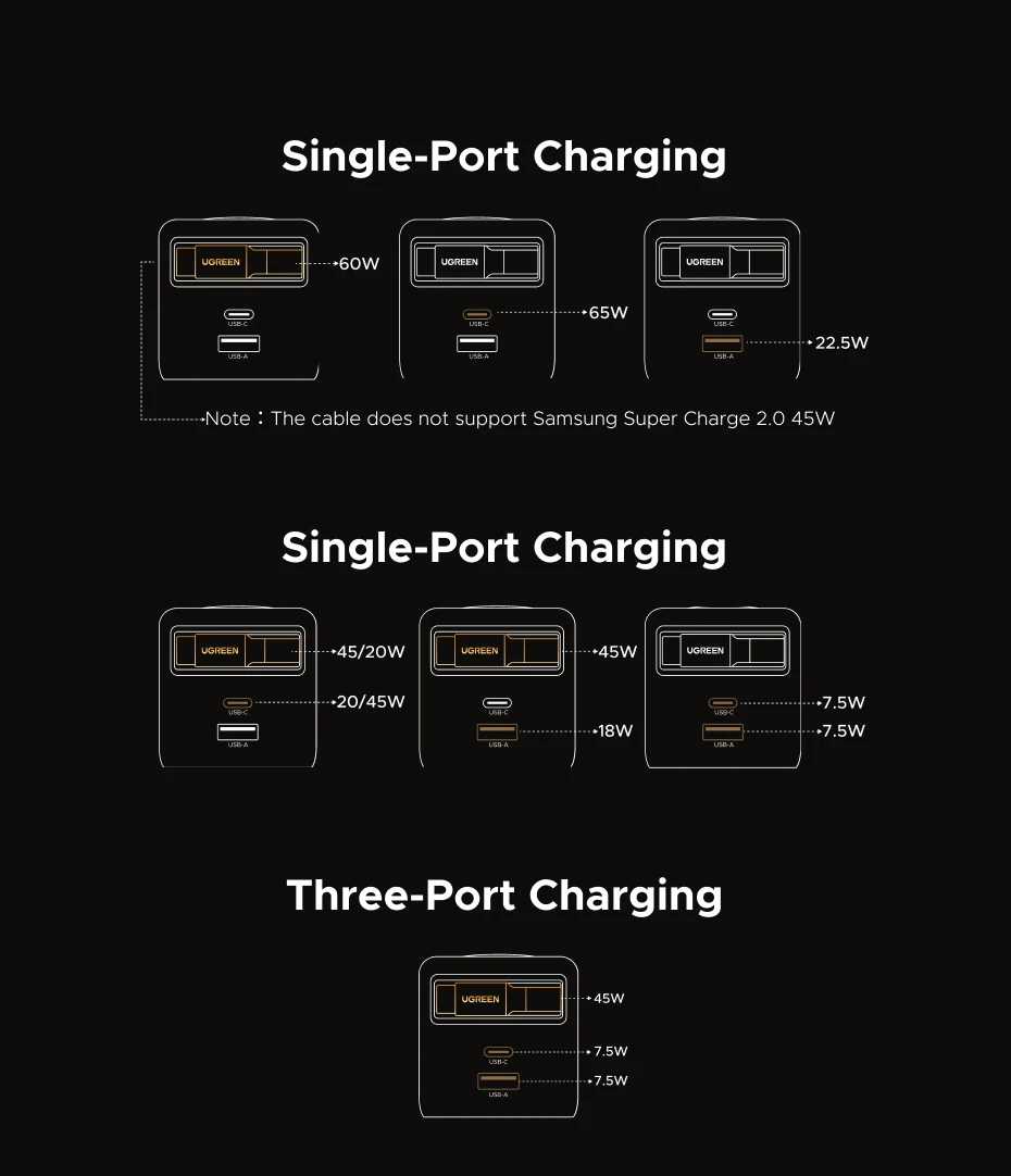 El cargador GaN UGREEN de 65 W mantiene su teléfono, tableta y auriculares cargados simultáneamente con su cable incorporado y sus puertos duales.Ya sea que se apresure a trabajar (carga rápida de 30 minutos a través de PD 3.0/PPS) o viajes de negocios (compatibilidad universal QC4+3.0/SCP), abandone los múltiples adaptadores: un cargador compacto alimenta todos sus elementos esenciales.