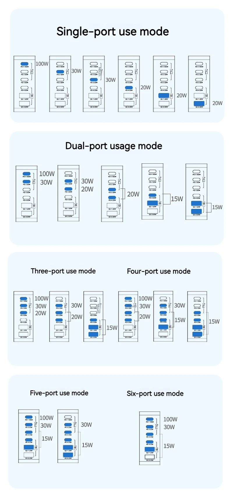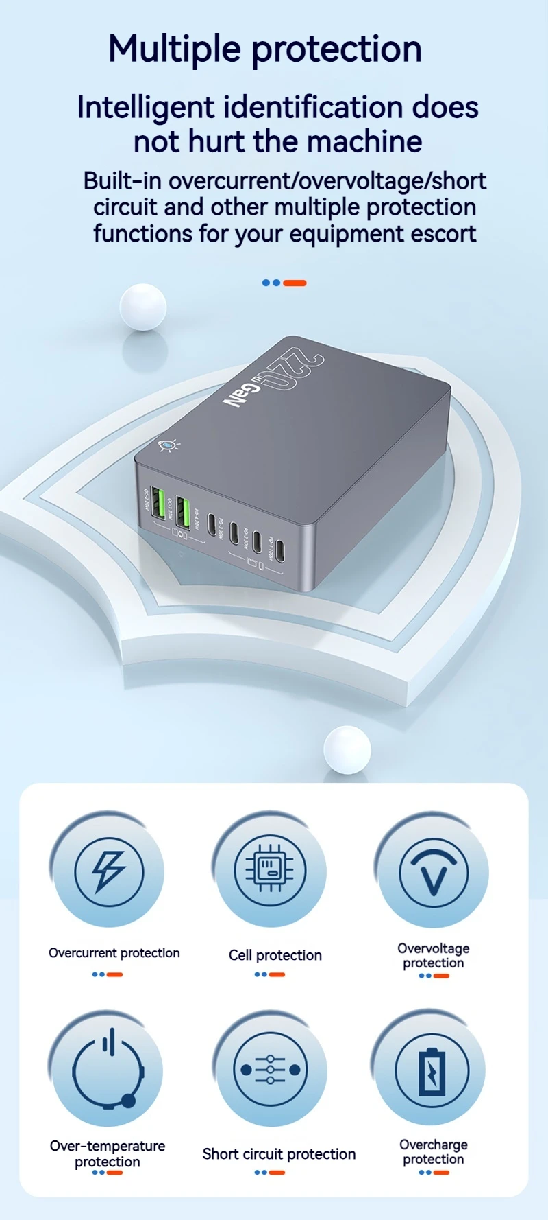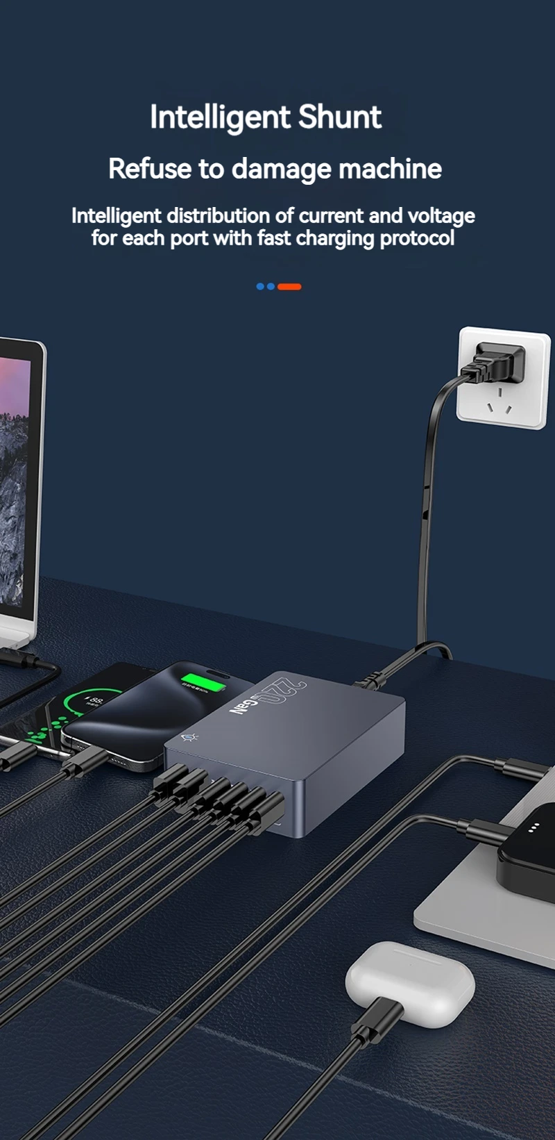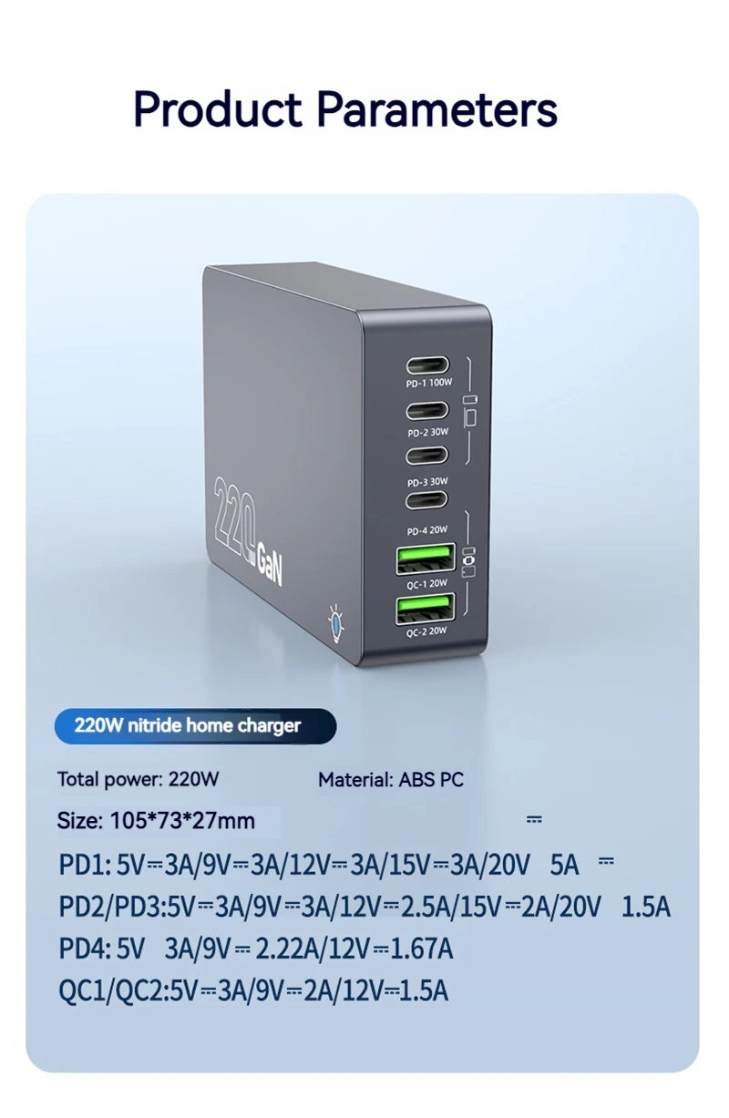 Cargador Universal USB PD de 220W para ordenador portátil, estación de carga de escritorio rápida USB tipo C QC3.0 para teléfono inteligente, tableta, Macbook Air Pro, 100W