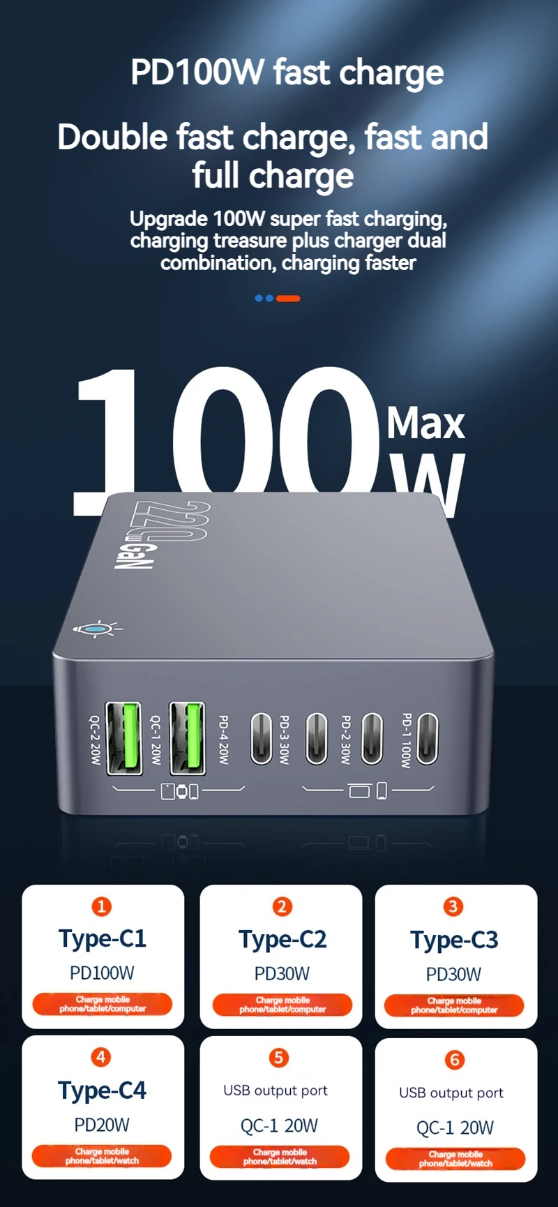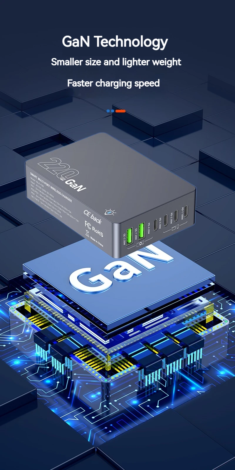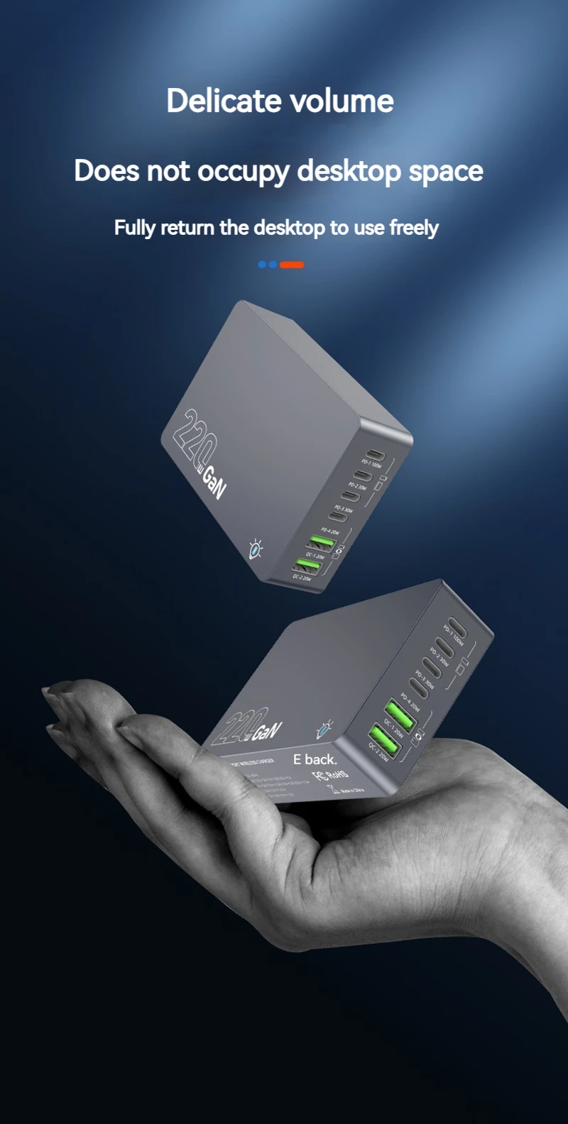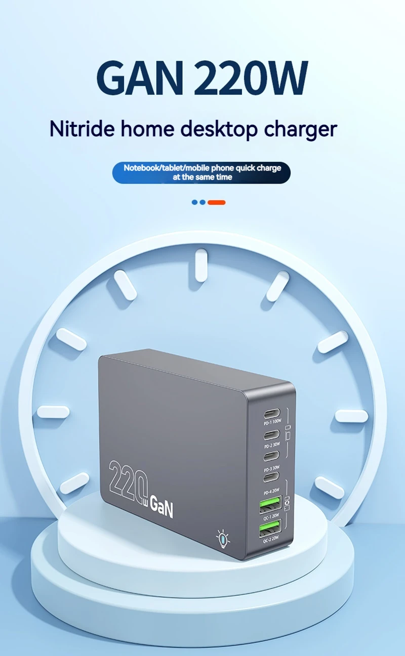 Cargador Universal USB PD 100W GAN para ordenador portátil, USB tipo C QC3.0, estación de carga rápida de escritorio para teléfono inteligente, tableta, Macbook Air Pro, 220W