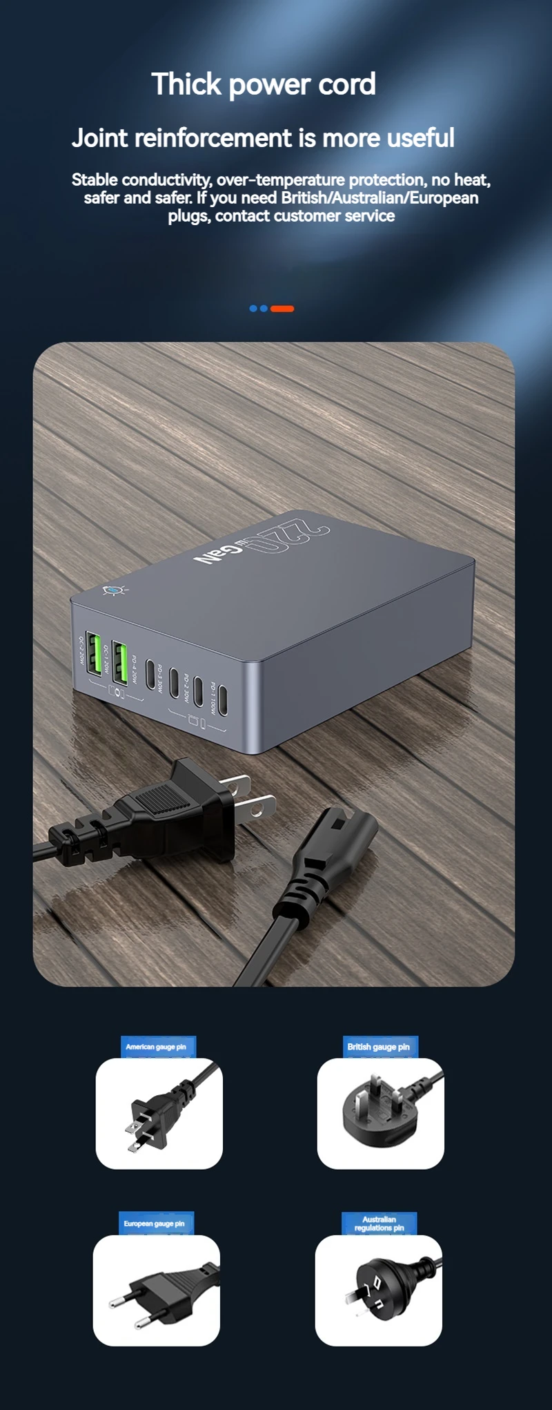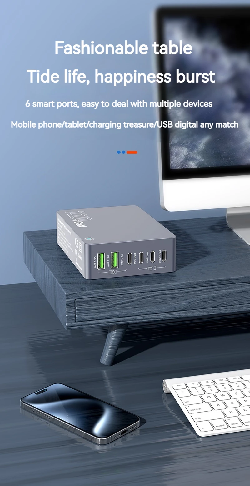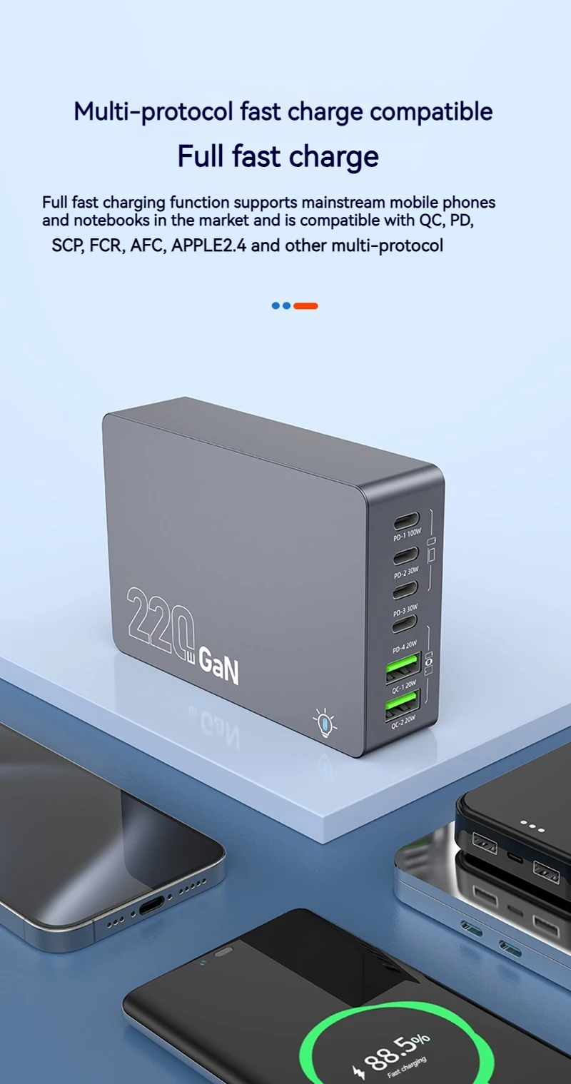 Cargador Universal USB PD 100W GAN para ordenador portátil, USB tipo C QC3.0, estación de carga rápida de escritorio para teléfono inteligente, tableta, Macbook Air Pro, 220W