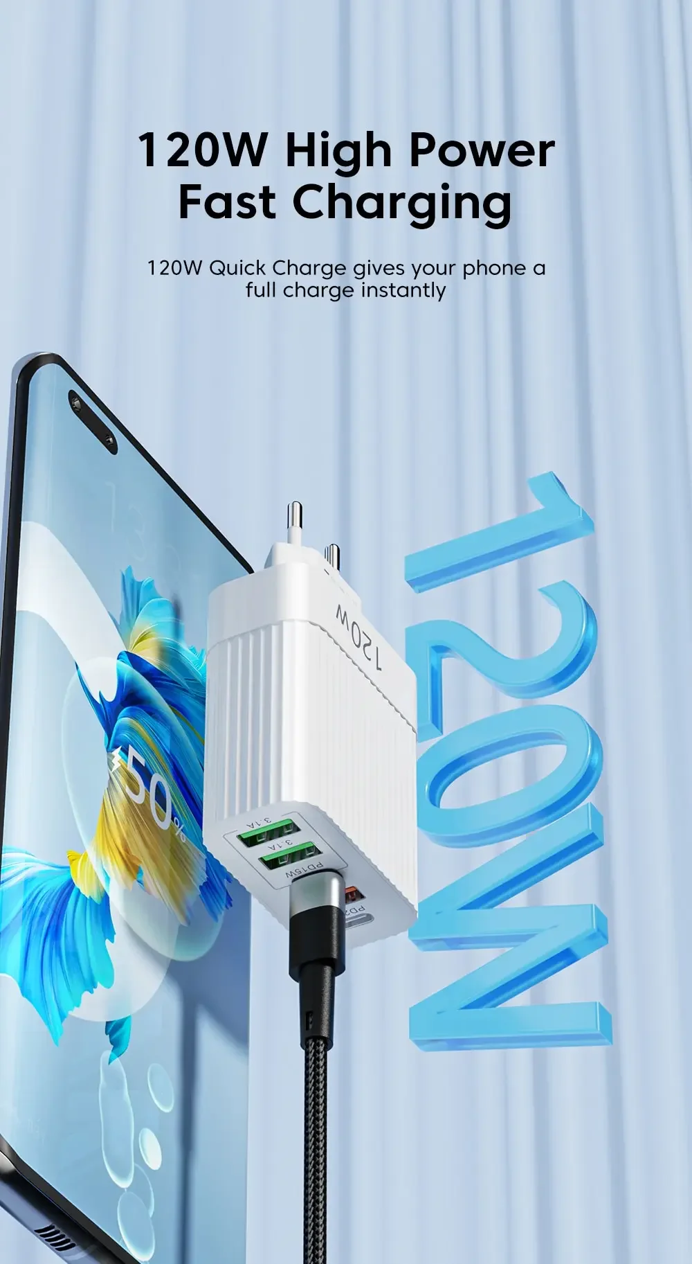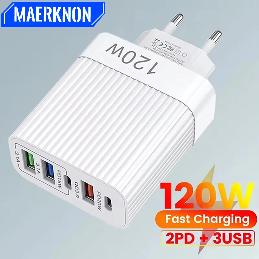 Cargador USB de 120W QC 3,0 PD tipo C adaptador de cargador de teléfono de carga rápida para iPhone 16 Samsung S23 Xiaomi Huawei USB C cargador de pared
