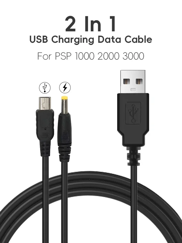 El cable cargador de energía de sincronización de transferencia de datos USB 2 en 1 es un cable USB diseñado especialmente para PSP 1000 2000 3000.