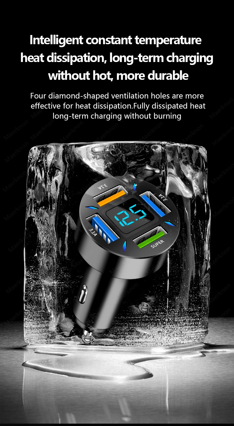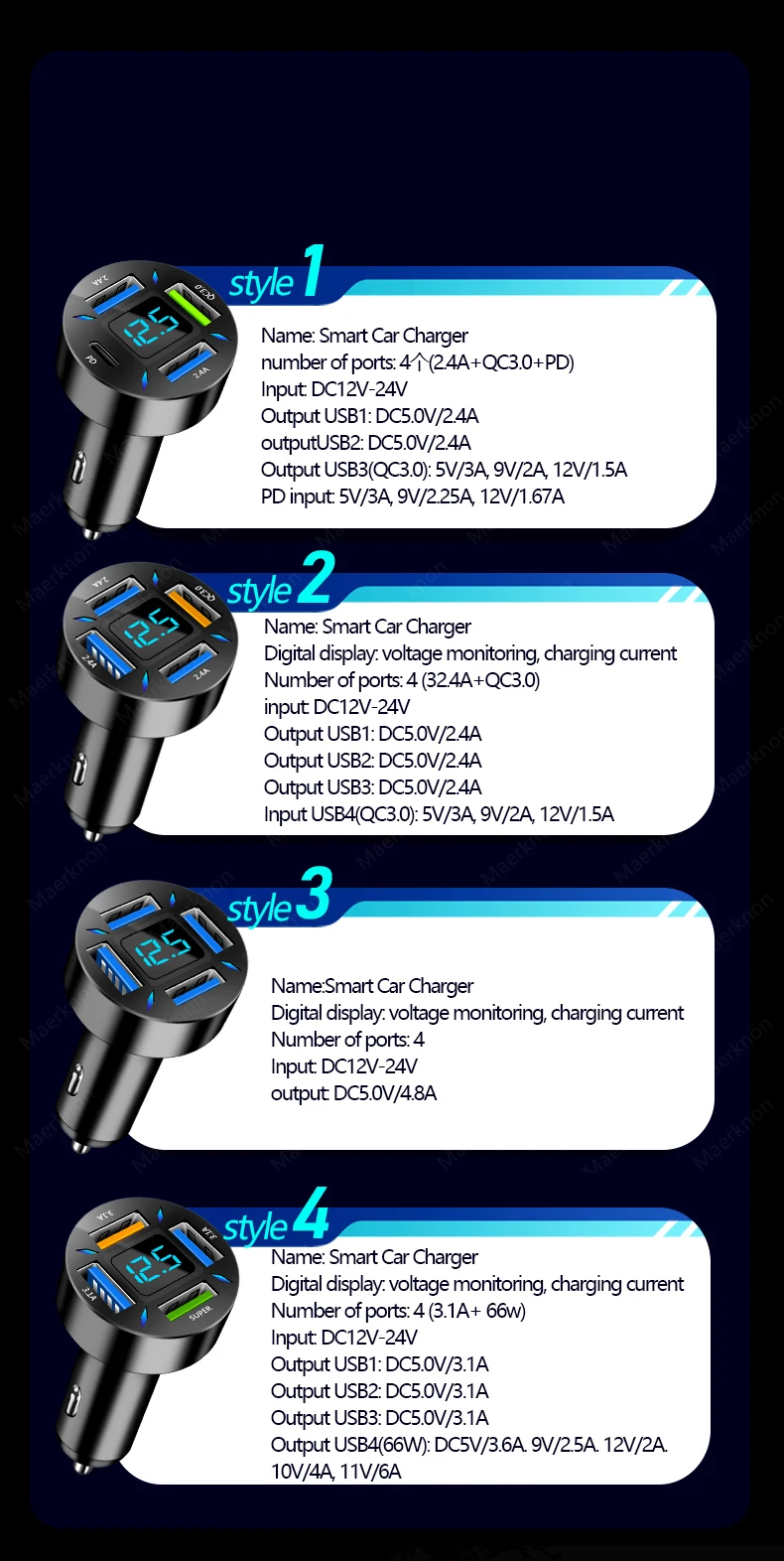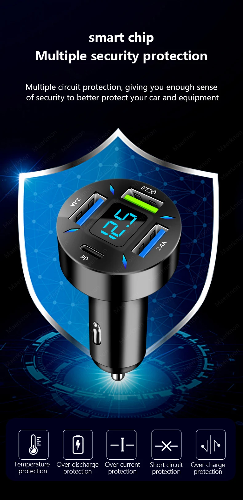 Cargador de coche USB de 4 puertos 66W PD tipo C adaptador de cargador de teléfonos de carga rápida para iPhone Xiaomi Huawei Samsung cargador rápido en coche