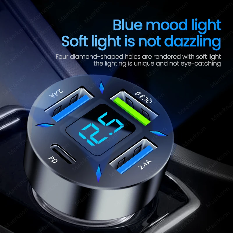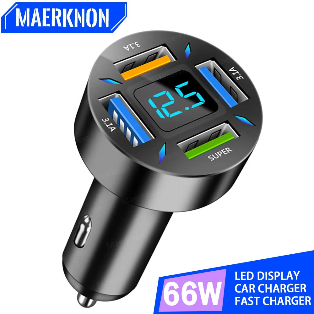 Cargador de coche USB de 4 puertos 66W PD tipo C adaptador de cargador de teléfonos de carga rápida para iPhone Xiaomi Huawei Samsung cargador rápido en coche