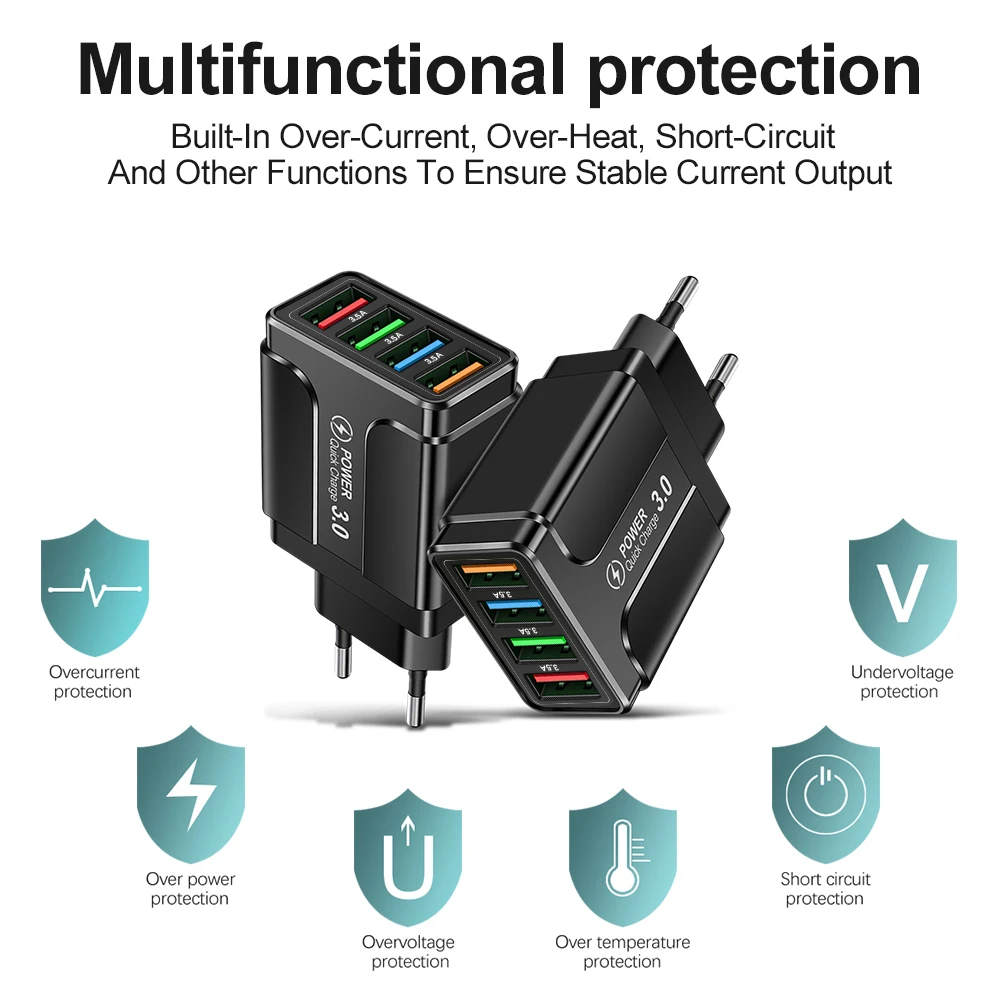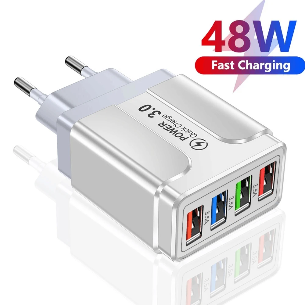 Cargador USB de 48W 4 carga rápida QC3.0 cargador de teléfono móvil para iPhone 14 13 Pro Xiaomi Samsung adaptador de pared de cargador de carga rápida