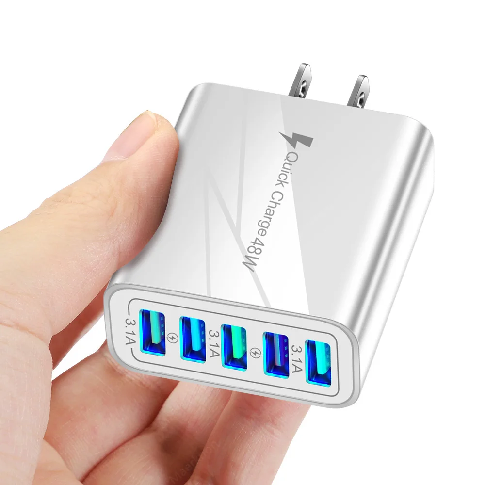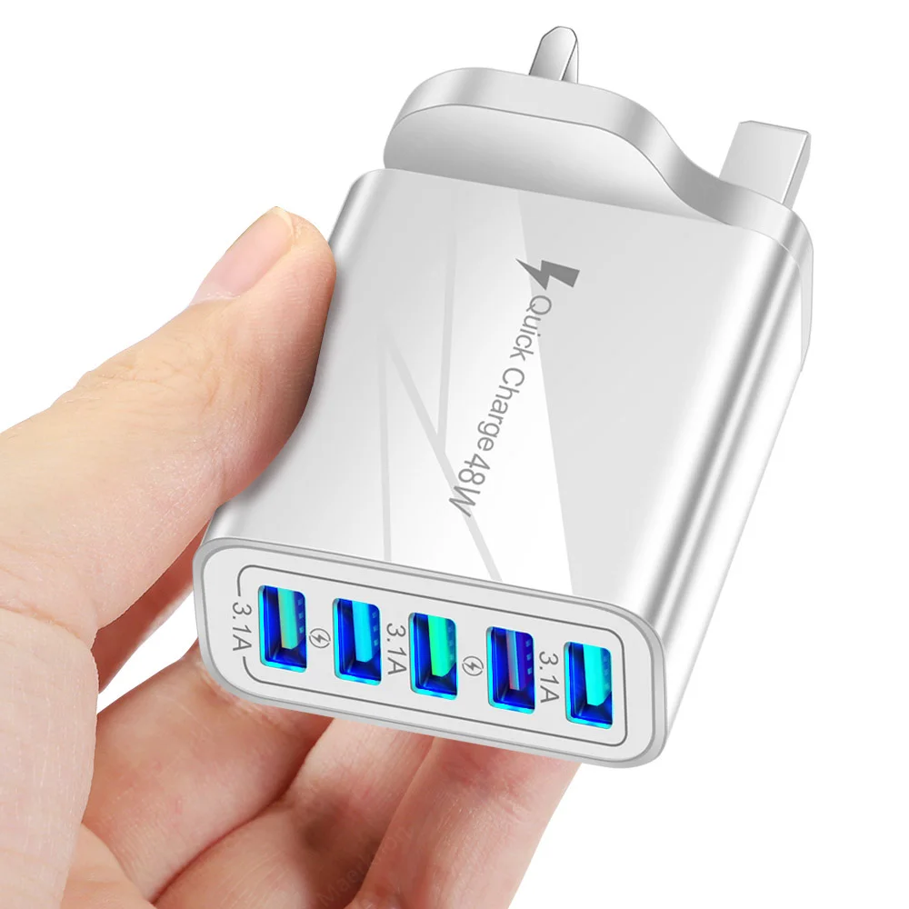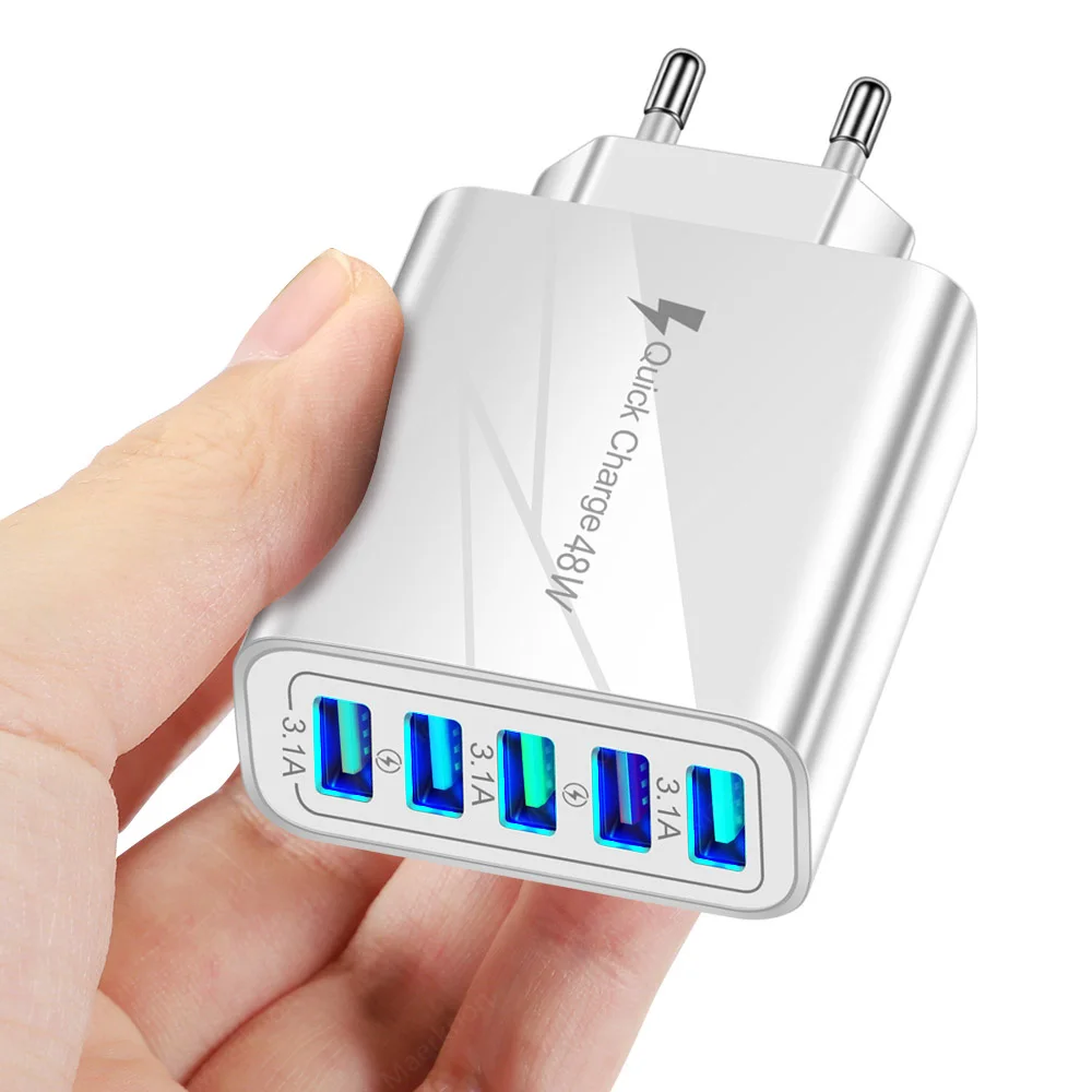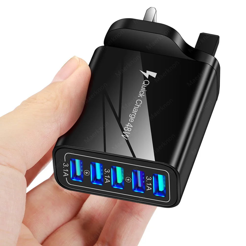 Cargador USB de 5 puertos de carga rápida 3, 0 48W adaptador de carga de teléfono de carga rápida para iPhone Samsung Xiaomi EU/US/UK enchufe cargador de pared