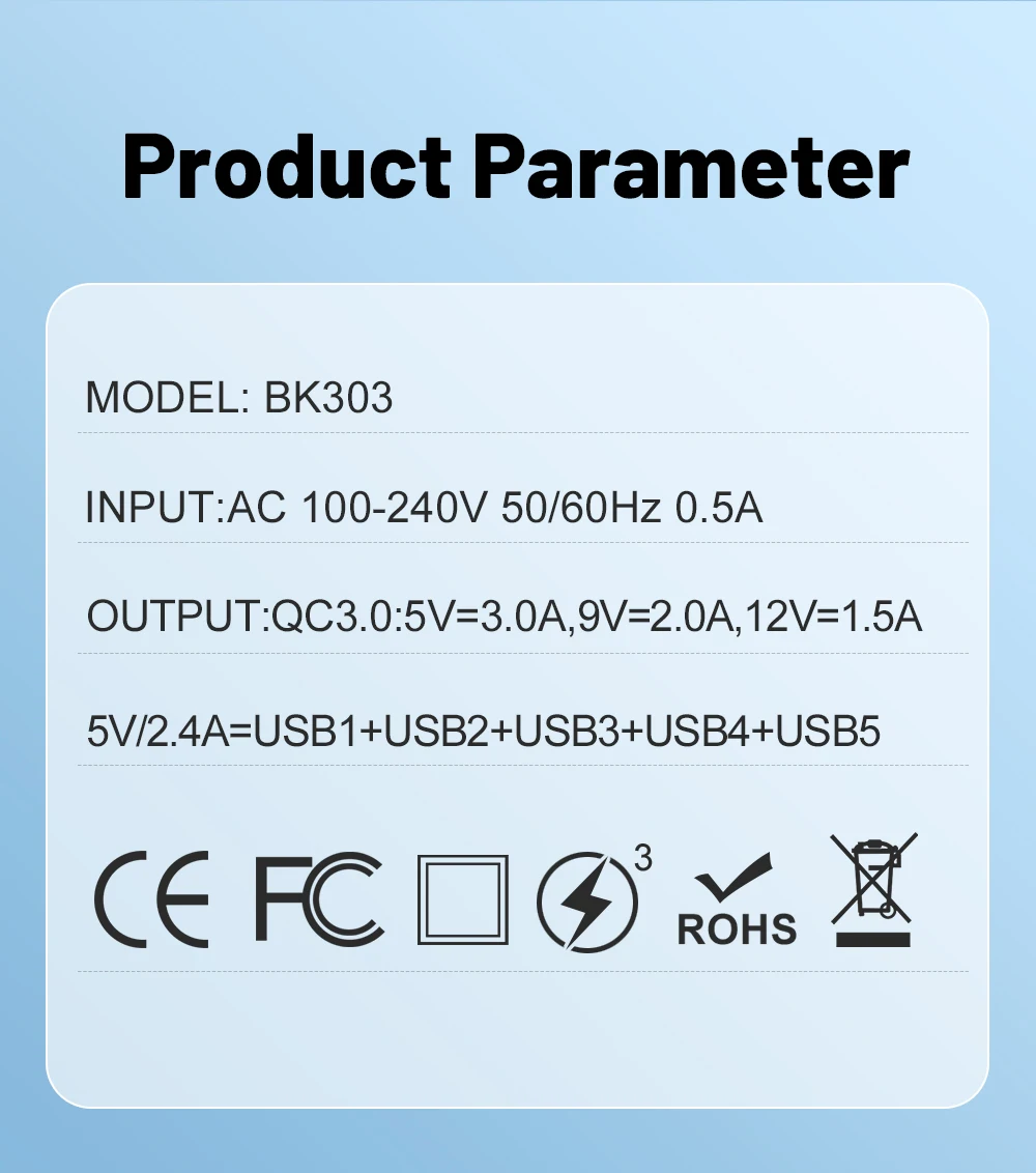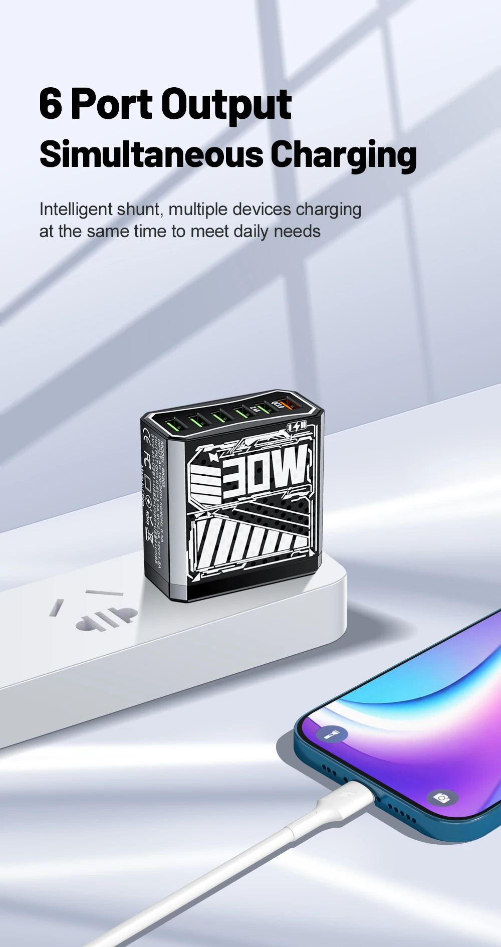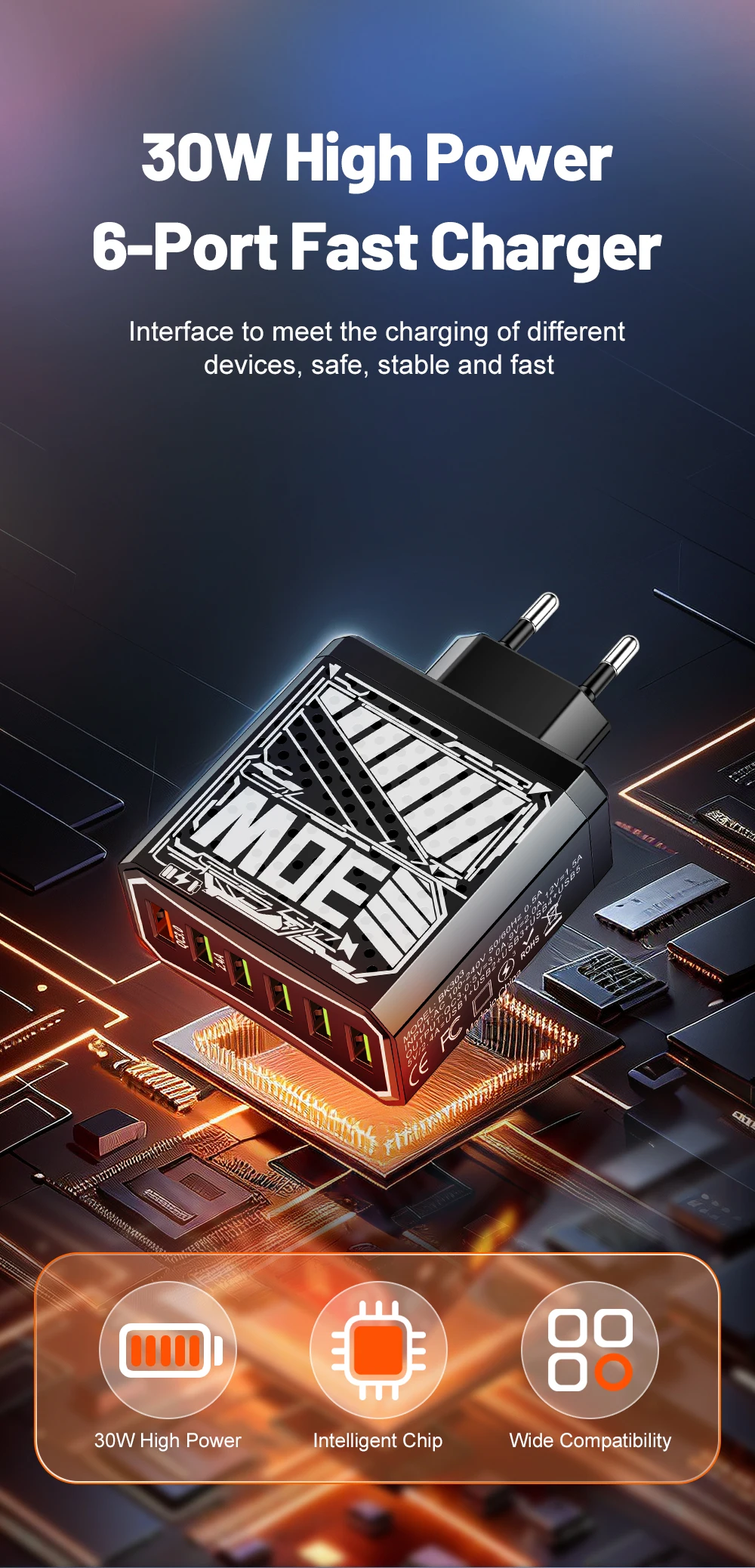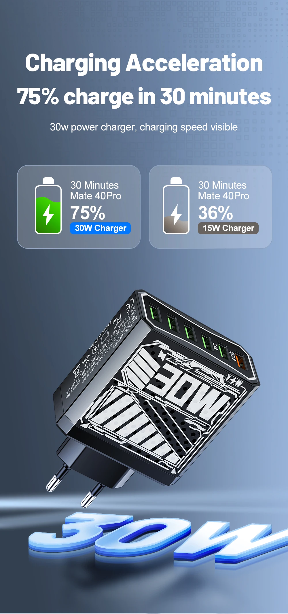 Comprar Cargador USB de 6 puertos QC3.0, cargador rápido de carga para Samsung, Xiaomi, adaptador de carga para teléfono móvil, enchufe UE/EE. UU./Reino Unido