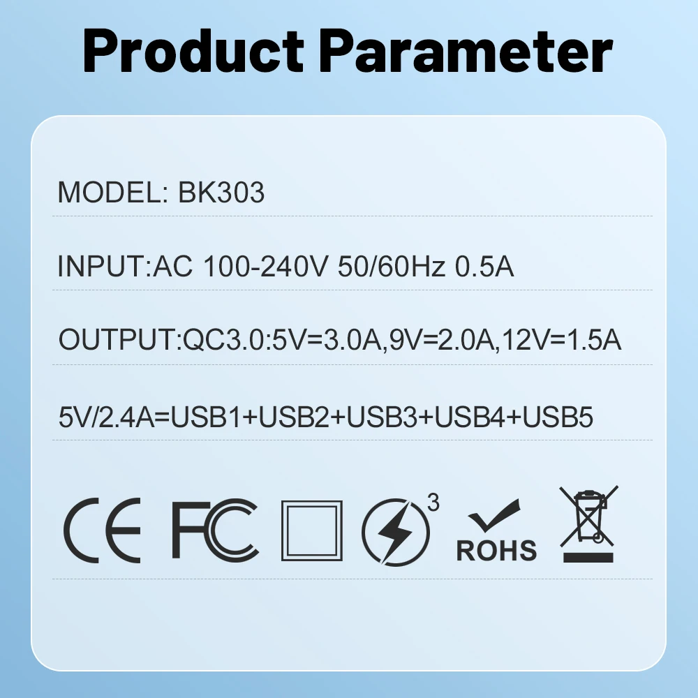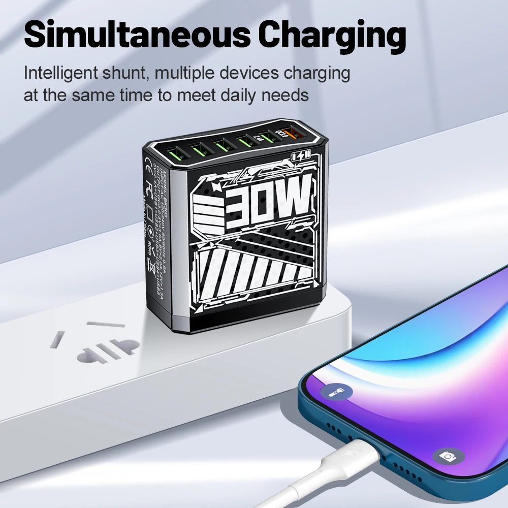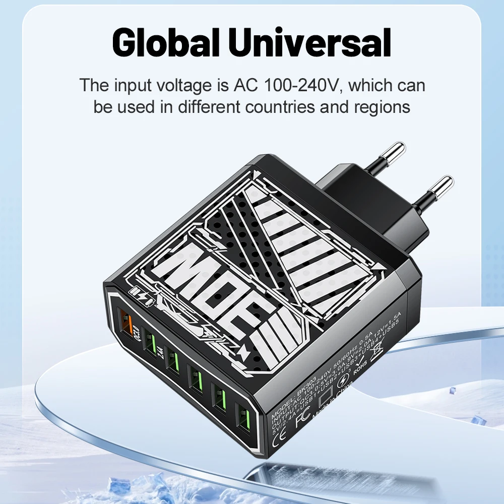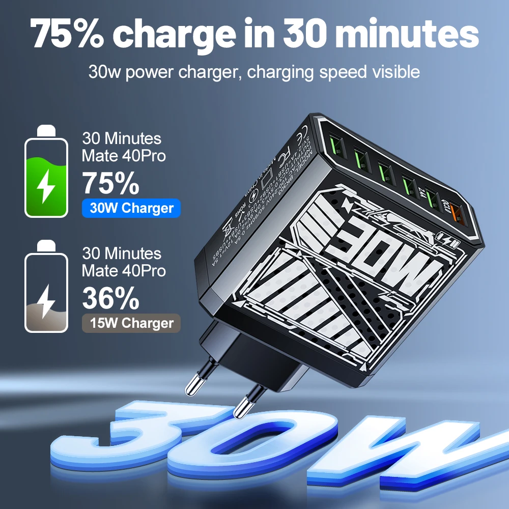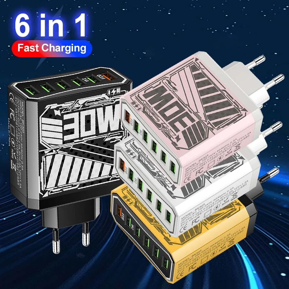 Comprar Cargador USB de 6 puertos QC3.0, cargador rápido de carga para Samsung, Xiaomi, adaptador de carga para teléfono móvil, enchufe UE/EE. UU./Reino Unido