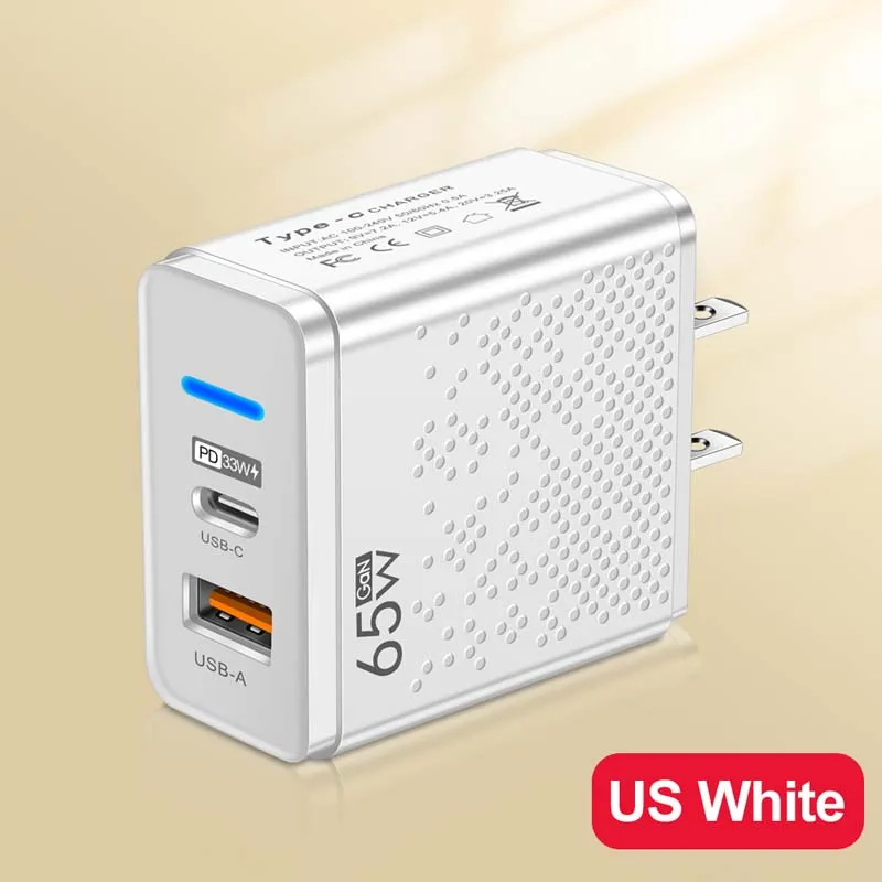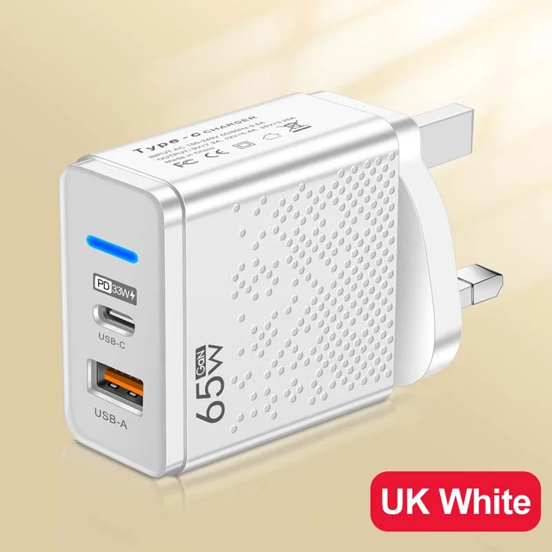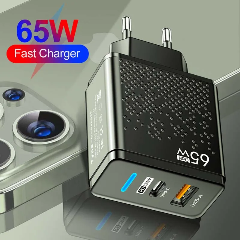 Comprar Cargador USB de 65W, adaptador de carga rápida para iPhone 16, Samsung, Xiaomi, enchufe UE/EE. UU./Reino Unido, cargador de pared para teléfono móvil, cargador USB C tipo C