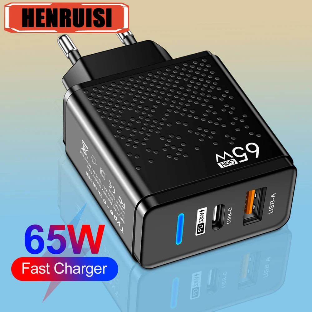 Comprar Cargador USB de 65W, adaptador de carga rápida para iPhone 16, Samsung, Xiaomi, enchufe UE/EE. UU./Reino Unido, cargador de pared para teléfono móvil, cargador USB C tipo C