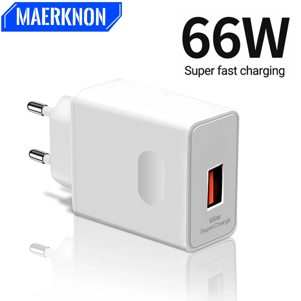 Comprar Cargador USB de 66W, cargador de pared con enchufe europeo/estadounidense de carga rápida, Cable tipo C 6A para Huawei Mate 40 50 60 Honor, cargador de teléfono de carga rápida