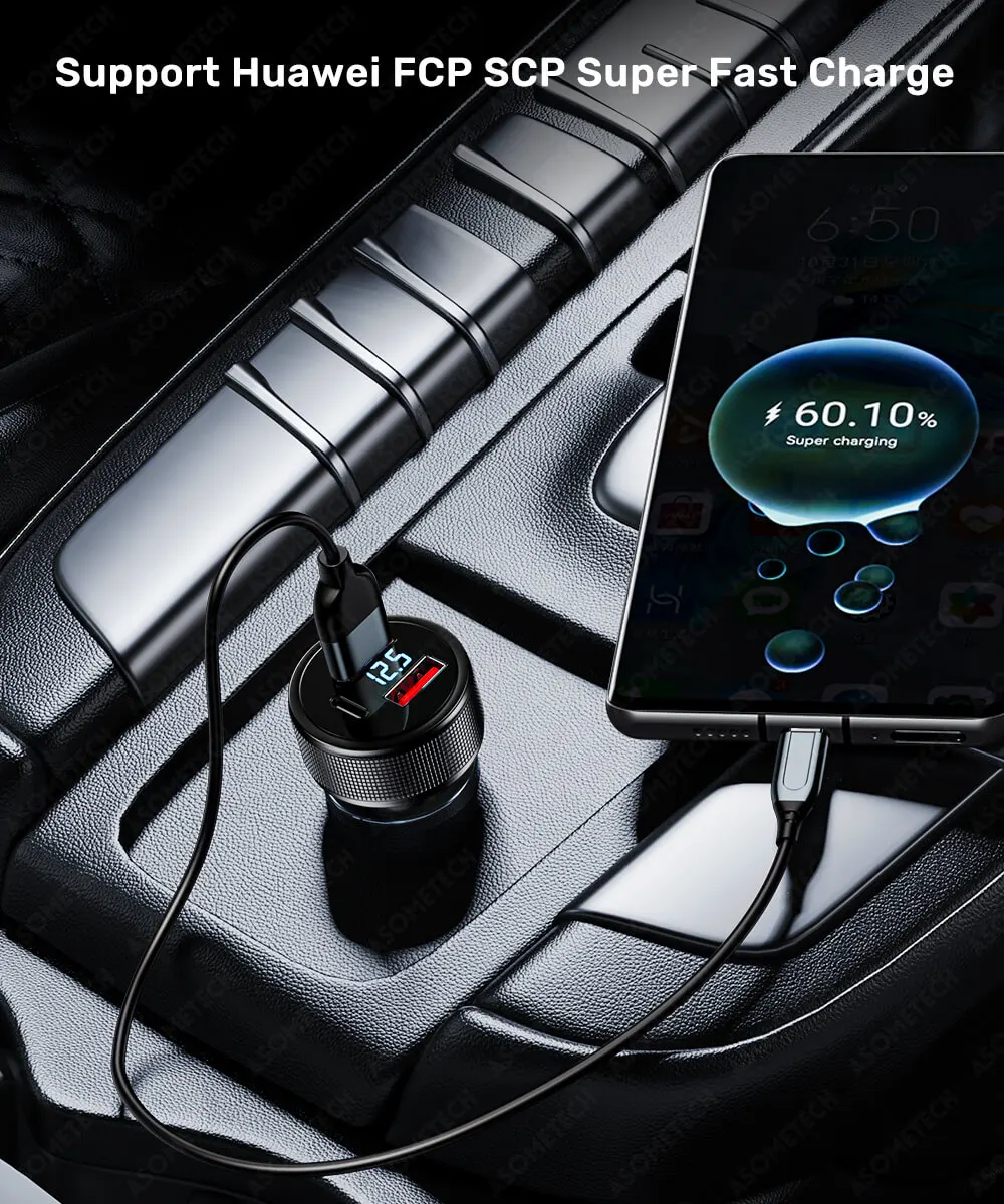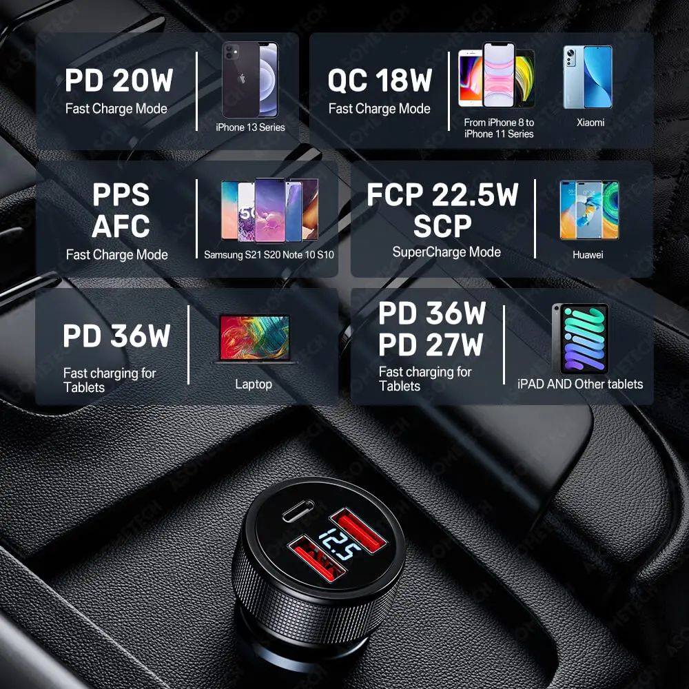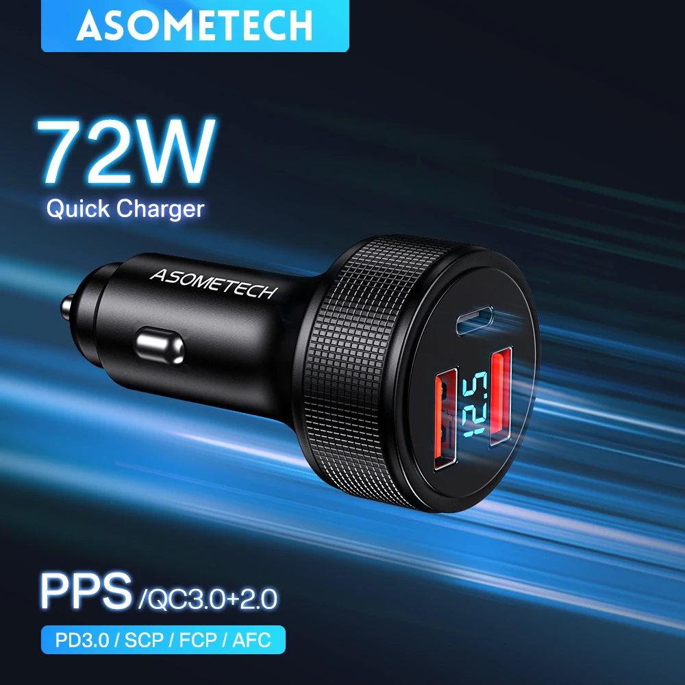 Comprar Cargador USB de 72W para coche, dispositivo de carga rápida QC 3,0, PD 3,0, SCP, pantalla LED, para IPhone 13, 14 Pro Max, Samsung, Xiaomi, Huawei, IPad