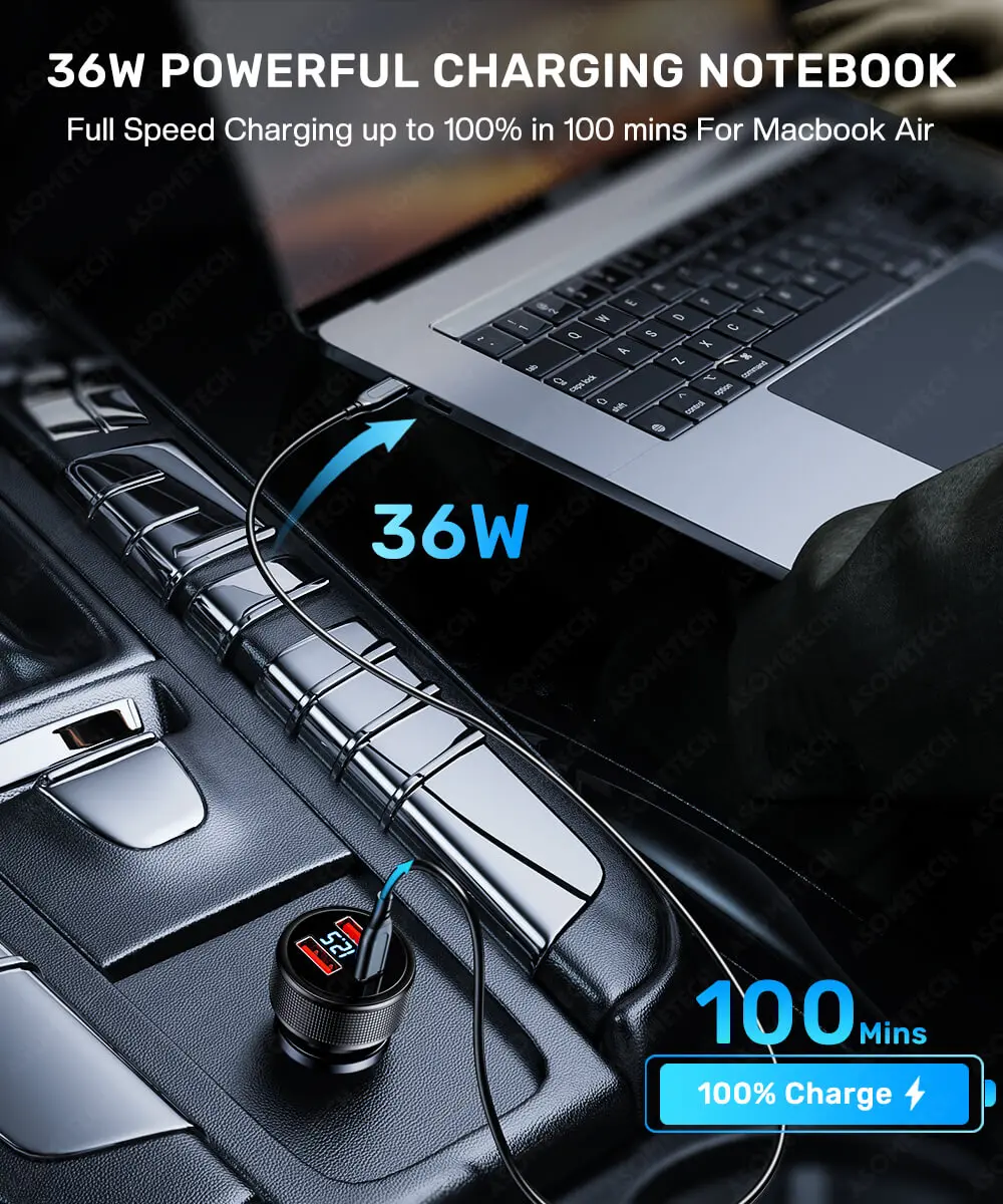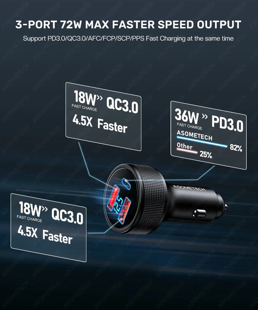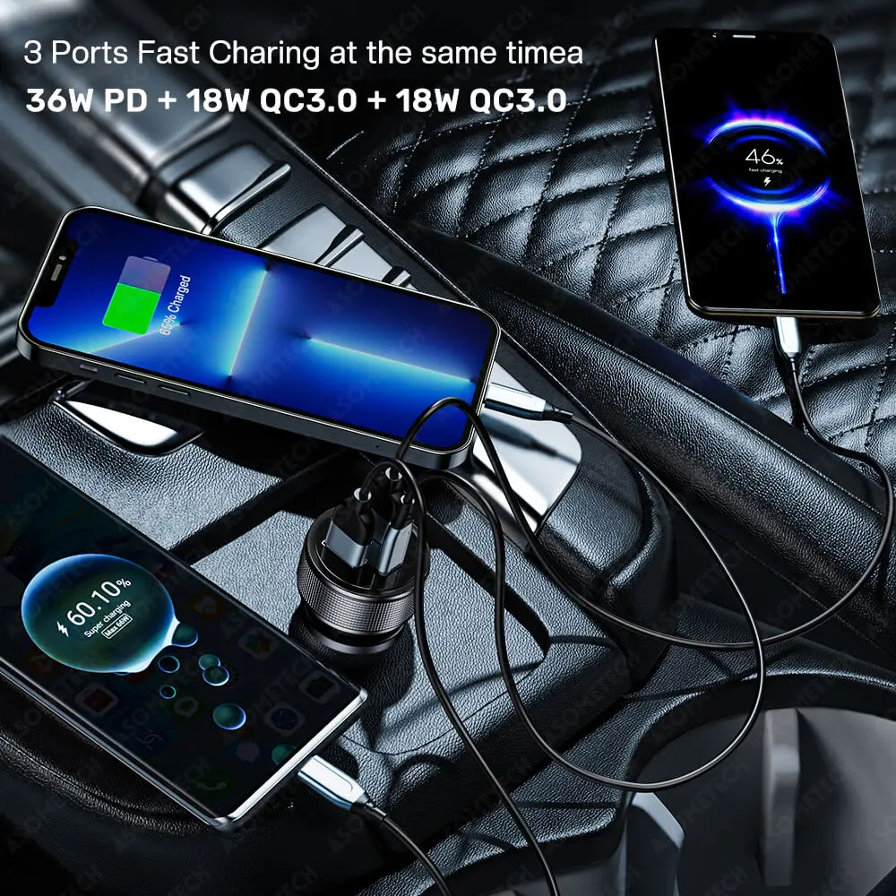 Comprar Cargador USB de 72W para coche, dispositivo de carga rápida QC 3,0, PD 3,0, SCP, pantalla LED, para IPhone 13, 14 Pro Max, Samsung, Xiaomi, Huawei, IPad