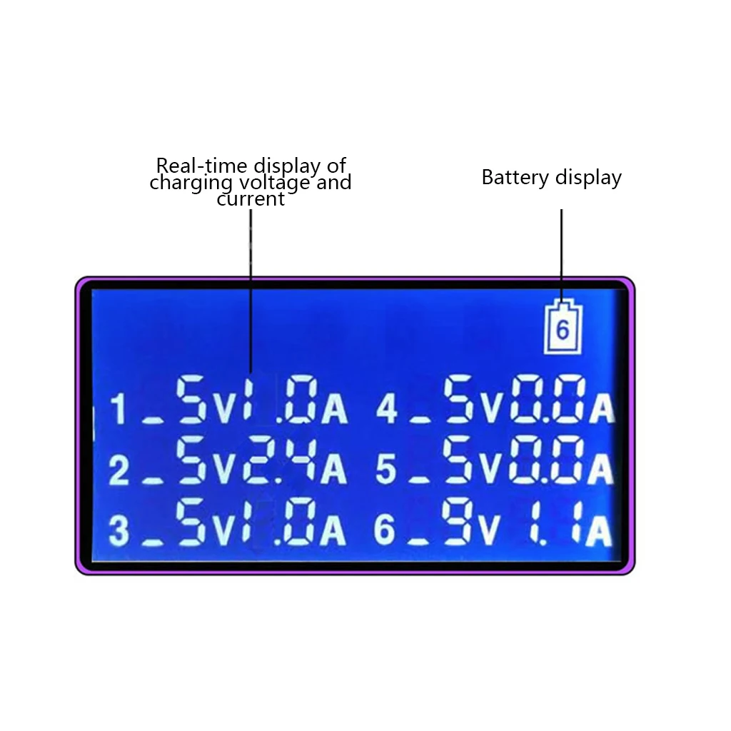 Comprar Cargador USB 8A QC3.0 con pantalla LCD, cargador de teléfono móvil de escritorio de 6 puertos, carga rápida inteligente para teléfonos inteligentes, tableta y PC