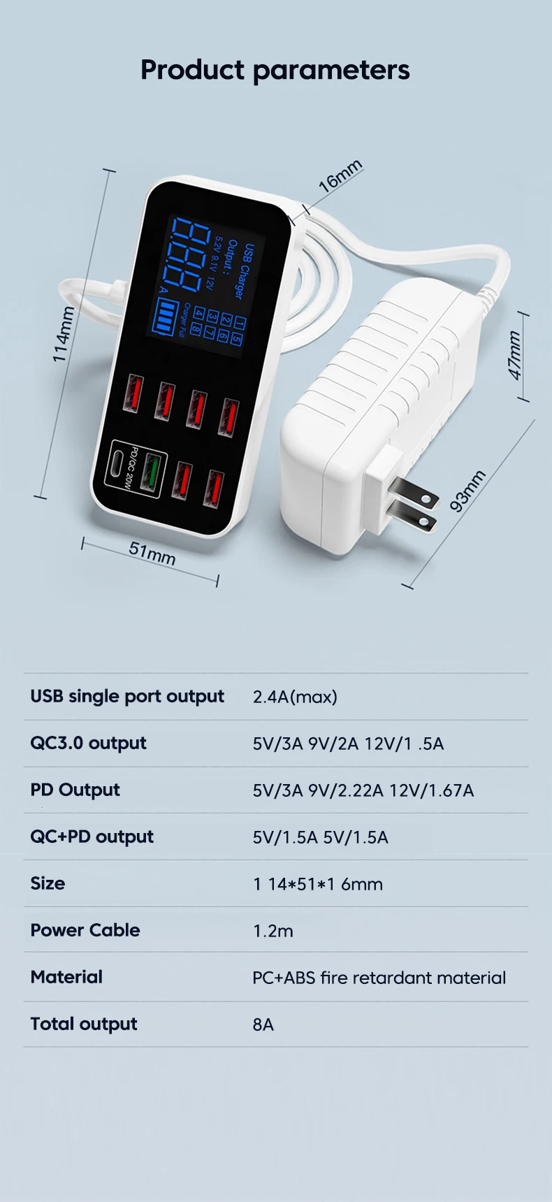 Comprar Cargador USB 8A para teléfono móvil, adaptador de carga rápida para iPhone 14 13 Xiaomi 13 13pro Samsung S23 S22 Oneplus 11 10pro, cargador de pared