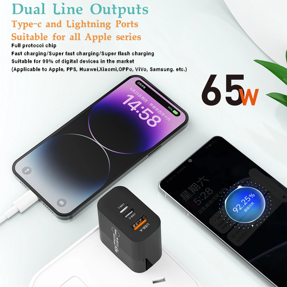 Cargador USB de alta potencia PD 65W, adaptador de cargador Convertible súper rápido para iPhone 15, 14, 13, 12 Pro, Huawei, Xiaomi, Samsung, Pixel oppo