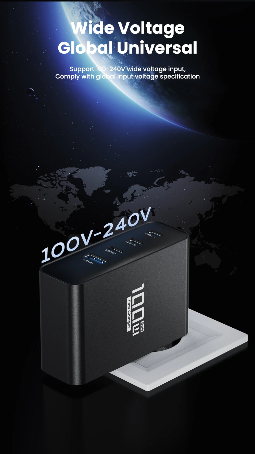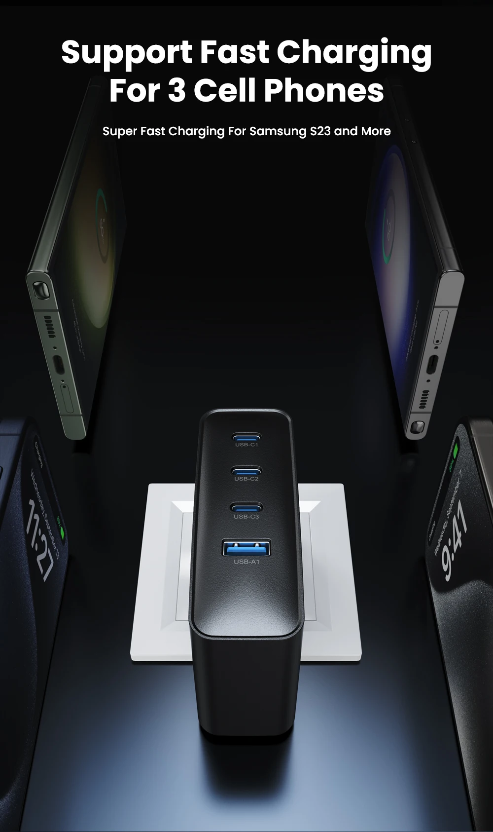 Los puertos C1/C2/C3 admiten carga súper rápida del teléfono/tableta Samsung 2.0; Compatible con carga rápida iPhone/iPad PD