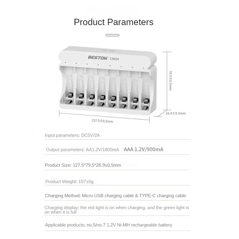 8 ranuras AA 1,2 V/1800mA AAA1.2V/900mA