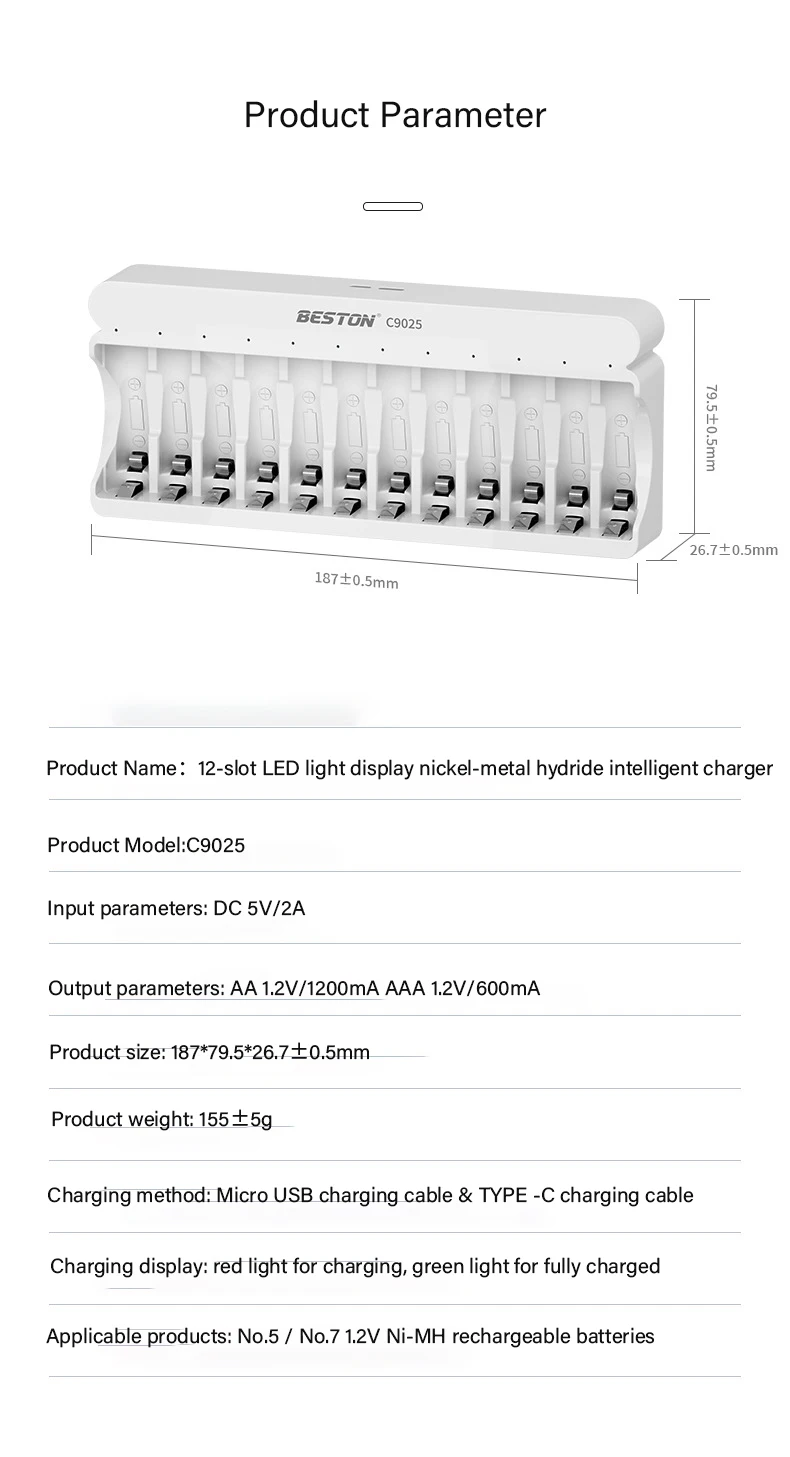 12 ranuras AA 1,2 V/1200mA AAA1.2V/600mATamaño del producto
