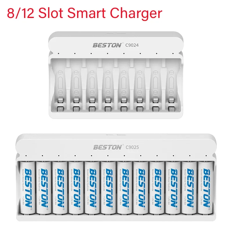 Comprar Cargador Usb para batería recargable de 1,2 V, AA, AAA, Ni-MH, 4/8/12 ranuras, batería inteligente rápida, luz indicadora LED