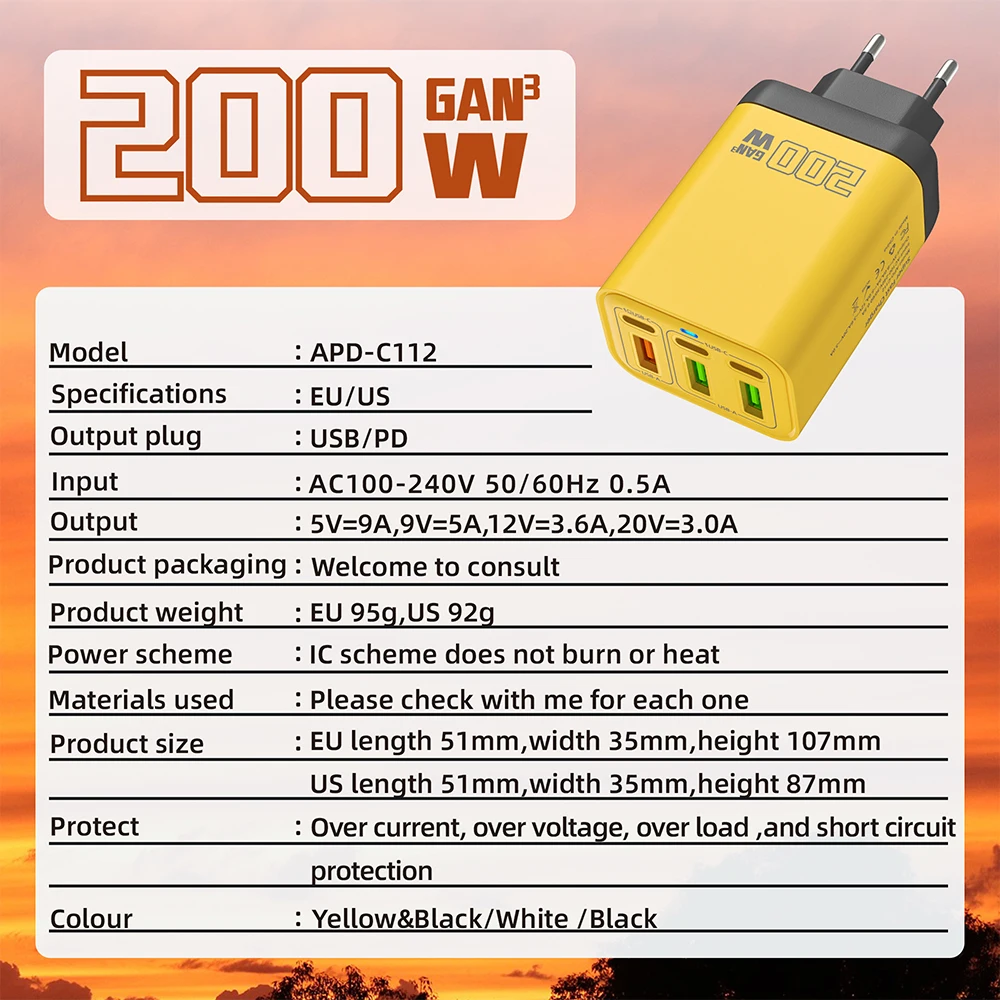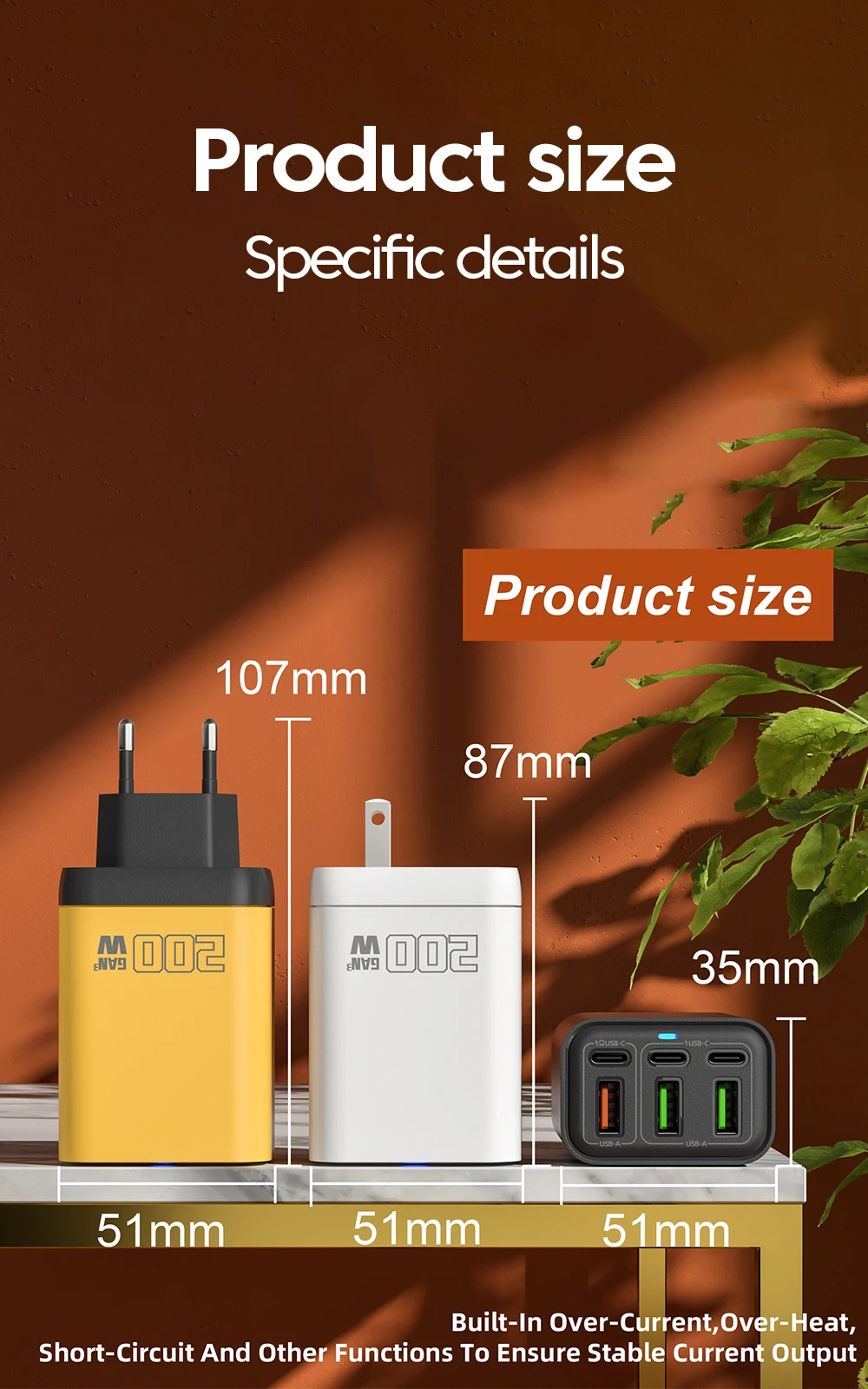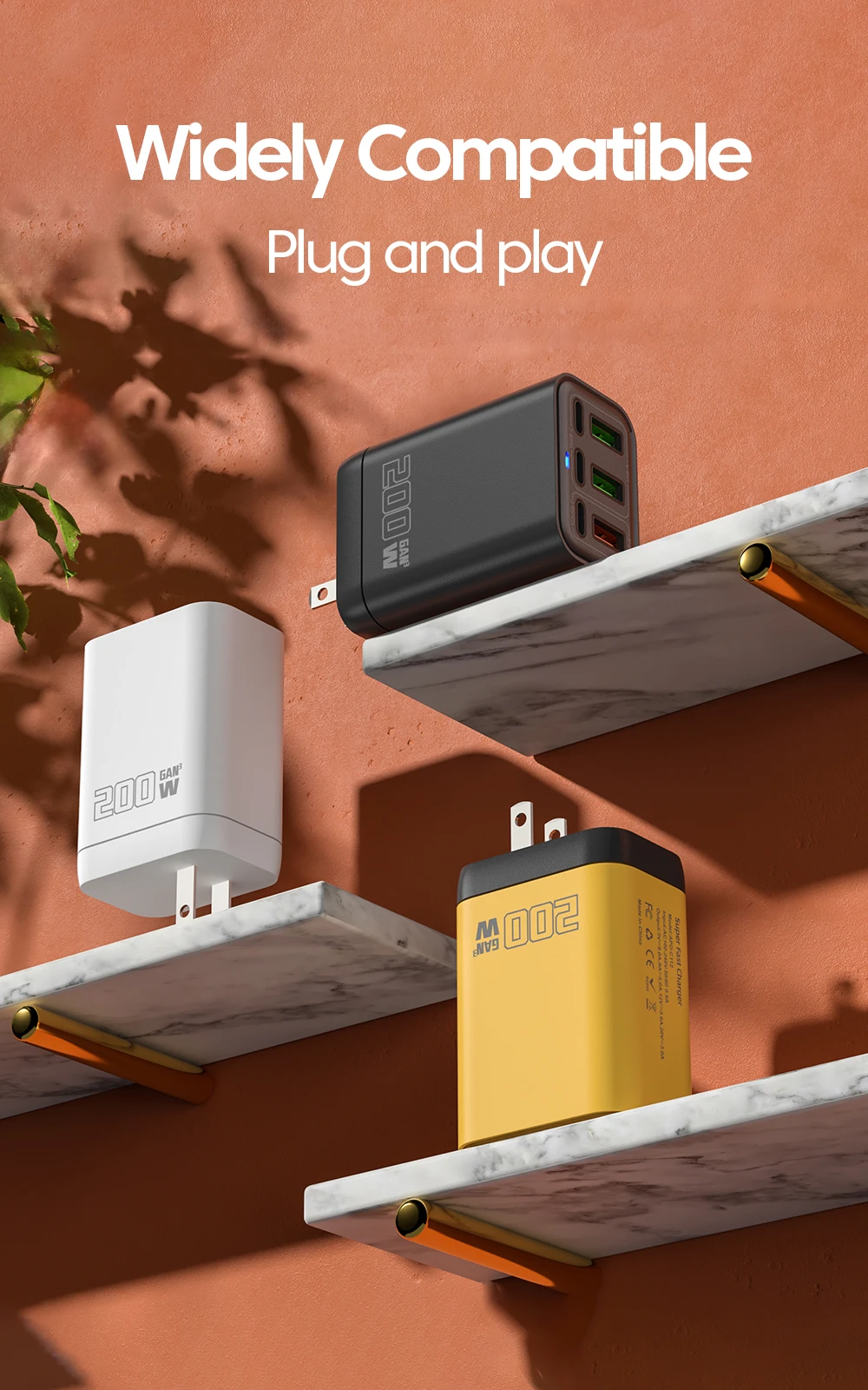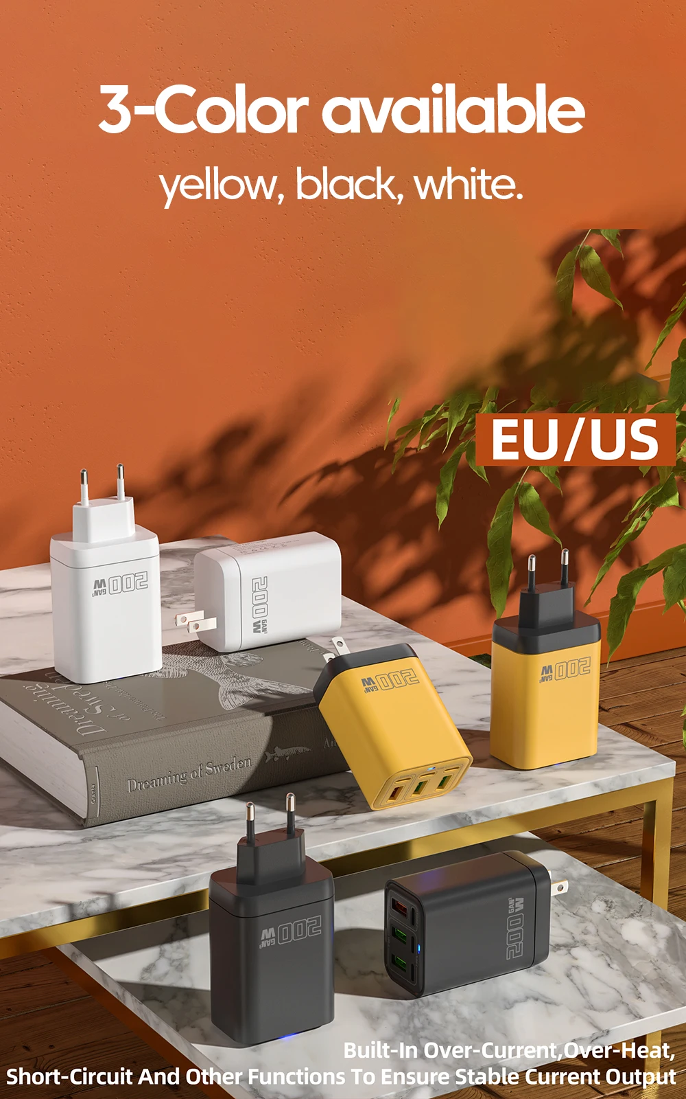 Comprar Cargador USB C de 6 puertos, adaptador de cargador PD de carga rápida 3,0 de 200W para iPhone, Xiaomi, Samsung, cargador de pared para teléfono móvil