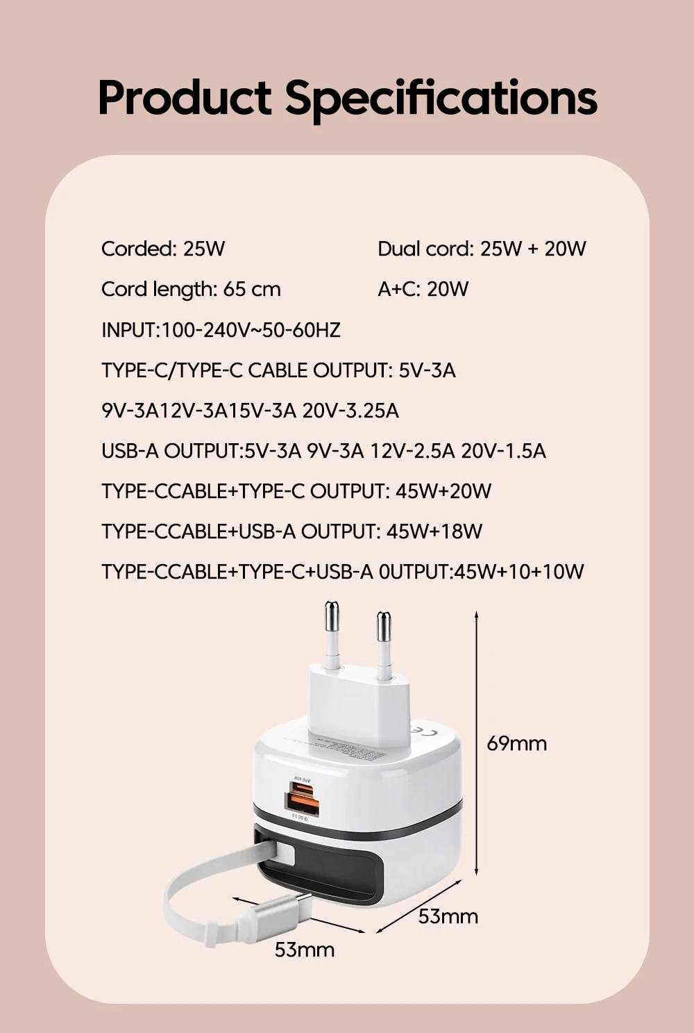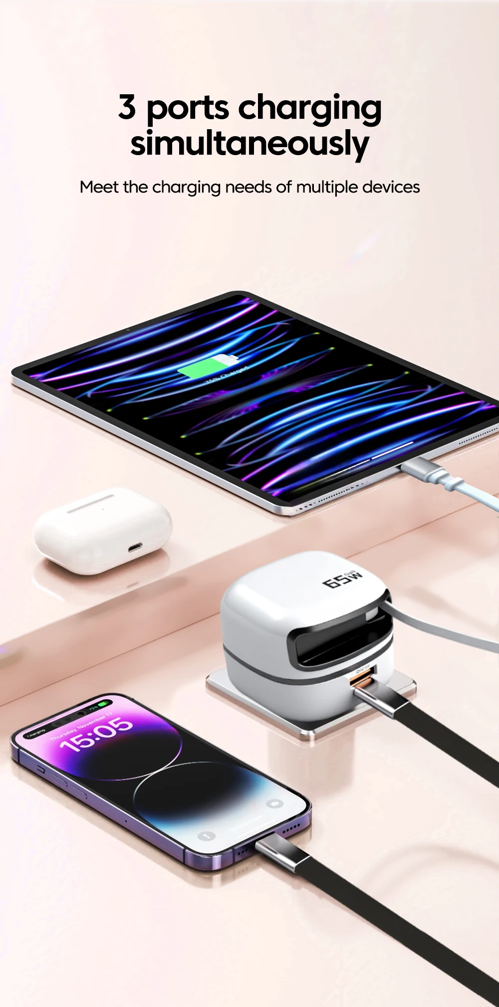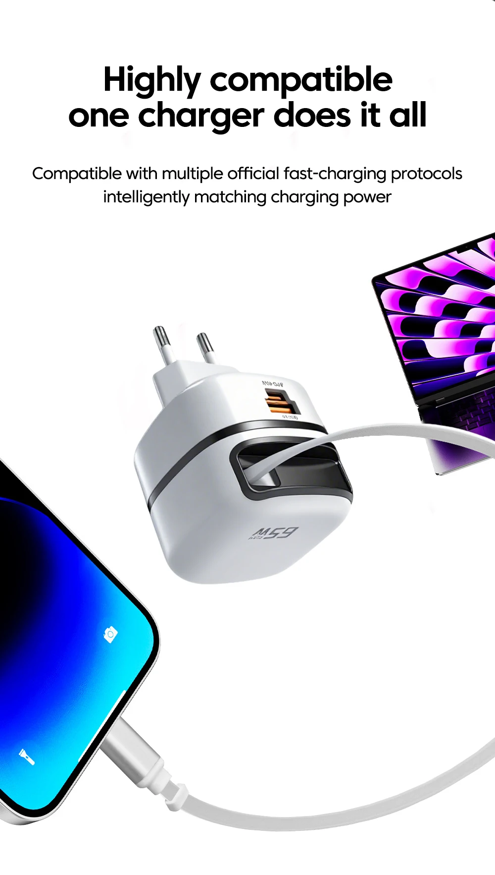 El cargador es idéntico a lo que se muestra en las imágenes publicitarias; en tamaño, no es tan pequeño como parece, pero cumple con las medidas anunciadas. Funcionalmente, queda un poco corto de las expectativas, aunque en general funciona bien. Por ejemplo: (1) técnicamente capaz de cargar 3 dispositivos al mismo tiempo, pero esto es prácticamente imposible; los puertos USB A y USB C están tan juntos que no hay suficiente espacio para 2 conectores/cables al mismo tiempo (o tienes que usar uno de los puertos A o C). (2) No es posible tener 65W en un solo tomacorriente, vea fotos con identificación de protocolos de carga identificados con TESTER FNB48P. (3) Comparado con otros cargadores de marcas que tengo, para la misma carga (36W), este cargador se calienta un poco más (+5 a 10 grados Celsius, pico 50-55 vs 40-45). En resumen, aunque no cumple del todo con las expectativas, es funcionalmente práctico y tiene una buena apariencia. Pedido enviado sin protección, entregado en 11 días, en Portugal, a través de Aliexpress Selection Standard Shipping.