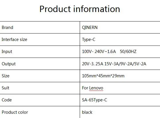 Artículo: Adaptador de corriente para computadora portátil de 65 W 20 V 3.25 A