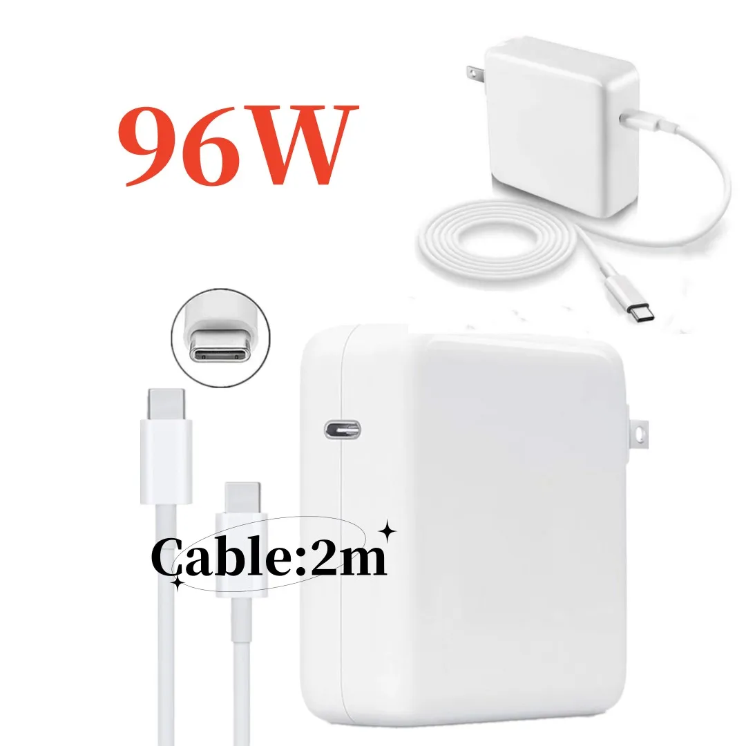 Cargador USB-C de 96 W con cable USB-C de 2 m para MacBook Pro de 16/15/14/13 pulgadas, iPad Pro de 12,9/11 pulgadas, Asus Dell HP Lenovo y todos los USB-C