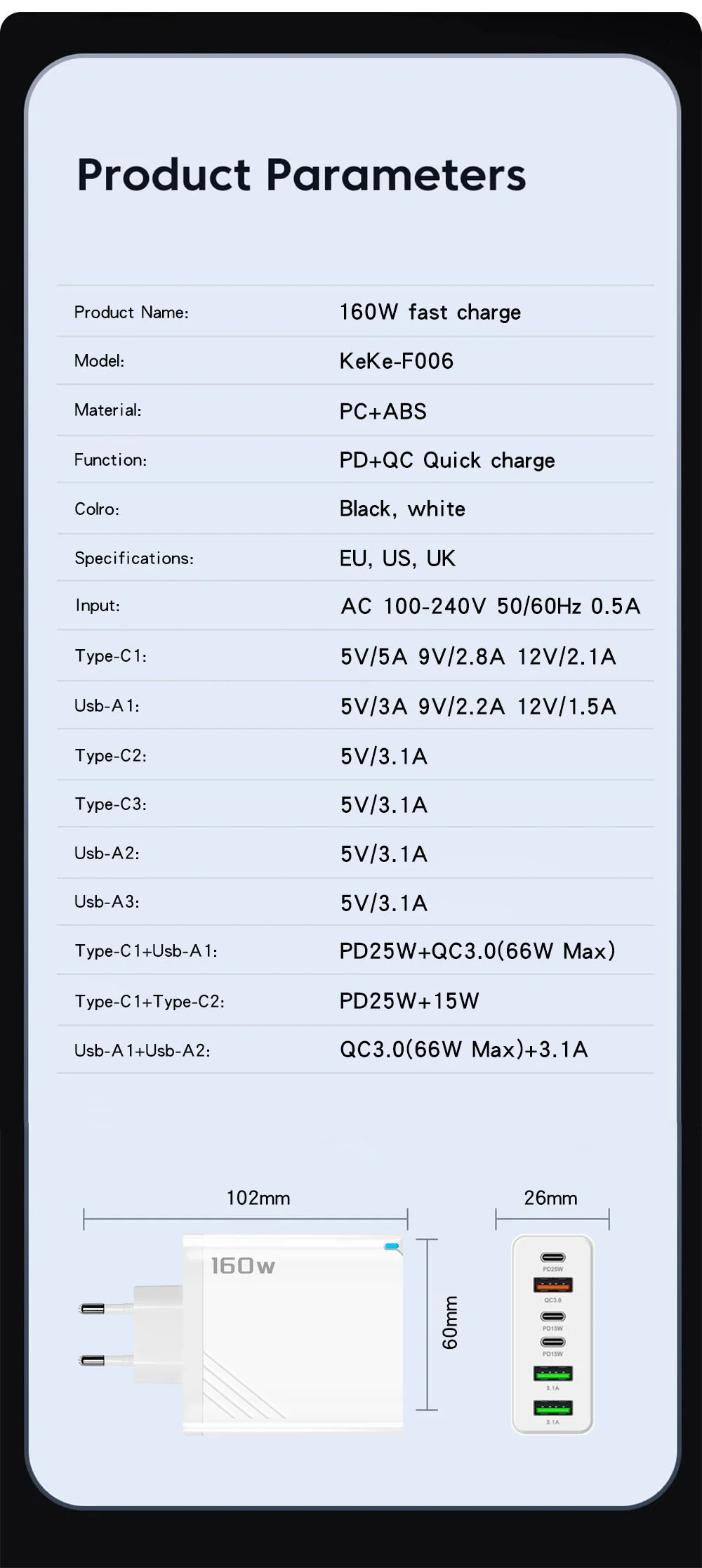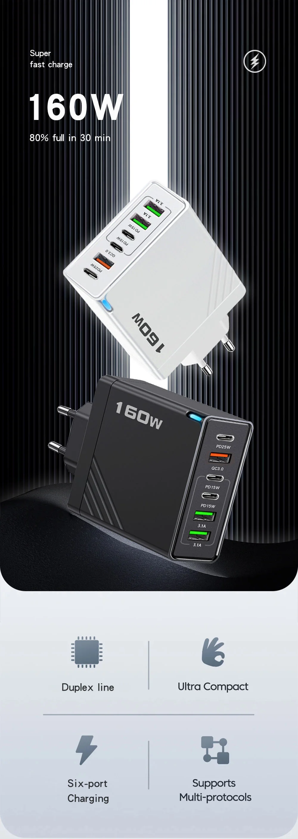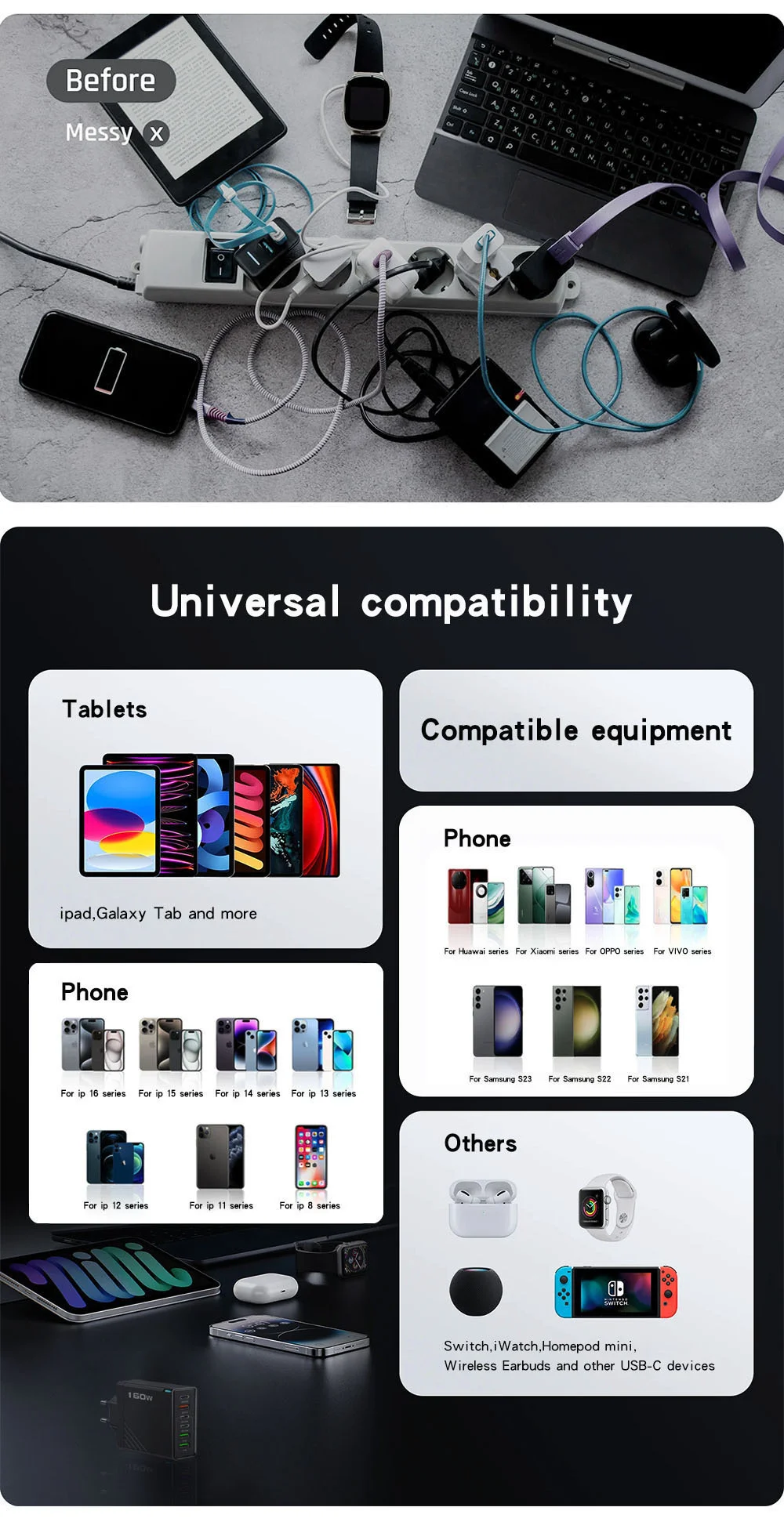Potencia: 160W (3USB+3PD)