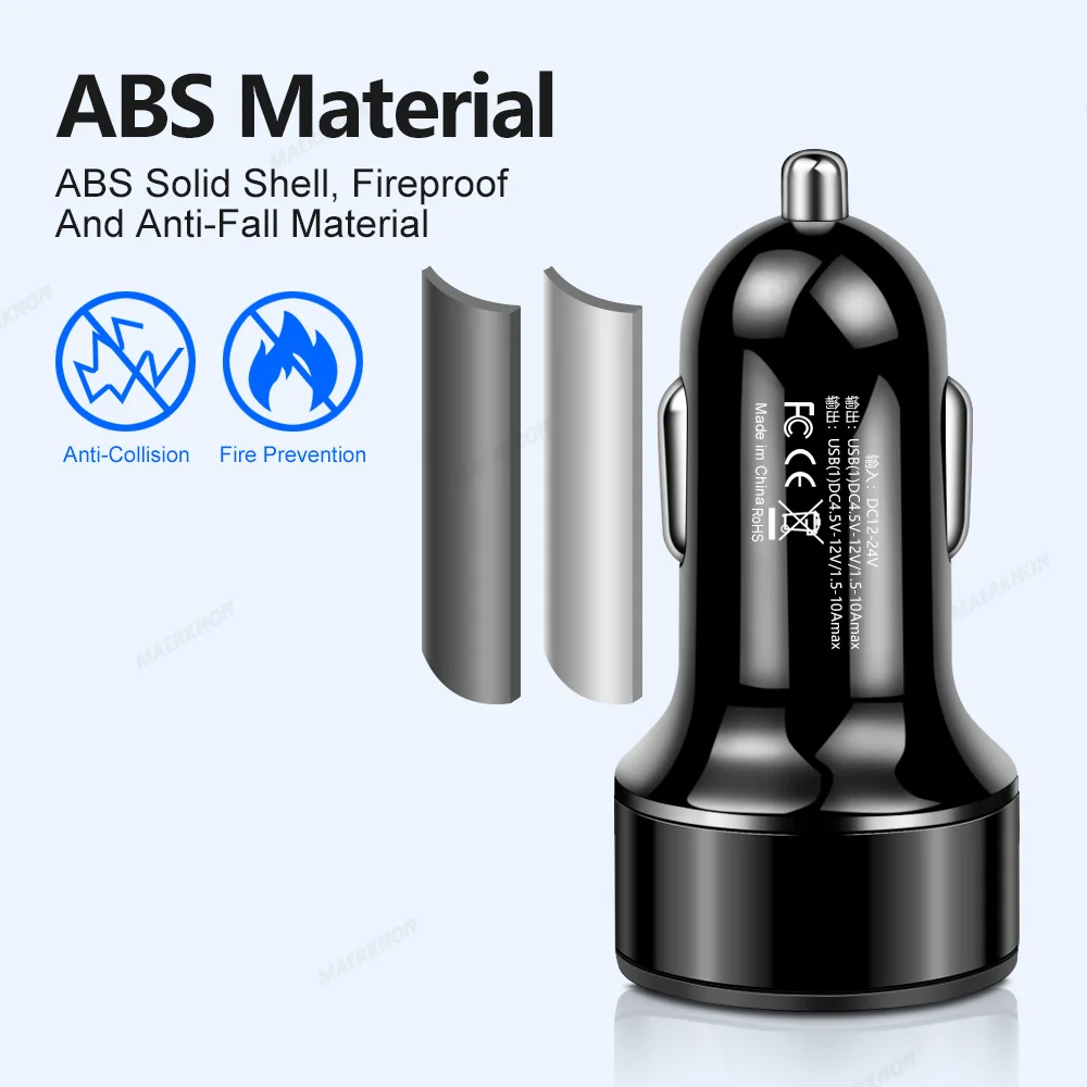 Comprar Cargador USB de carga rápida para coche, adaptador de doble puerto para Huawei, Xiaomi, iPhone 12, 13, 14 Pro, 4,0, 3,0, 10A