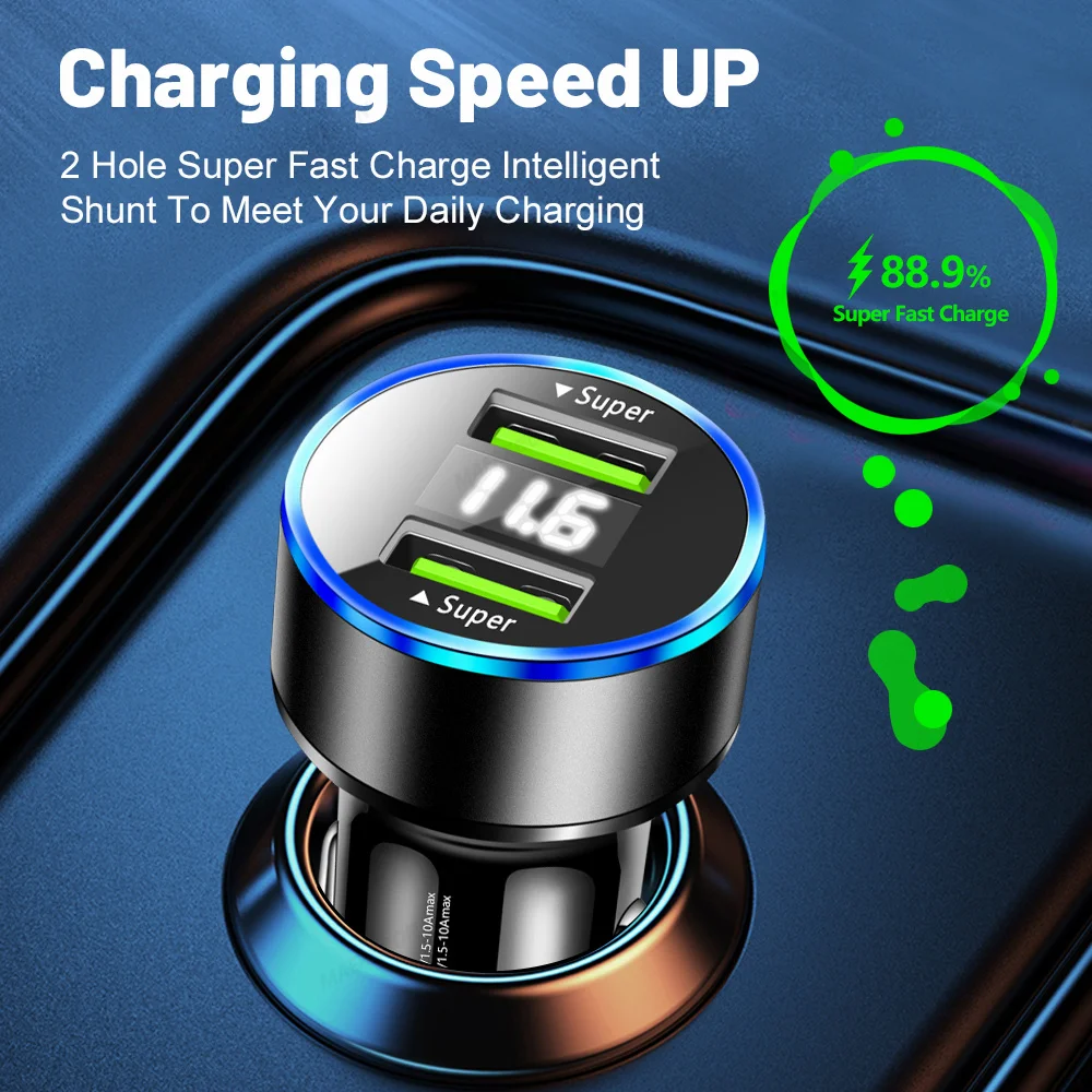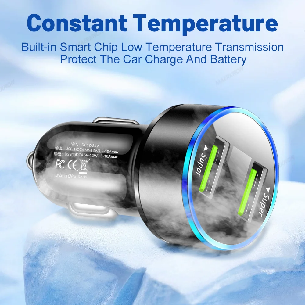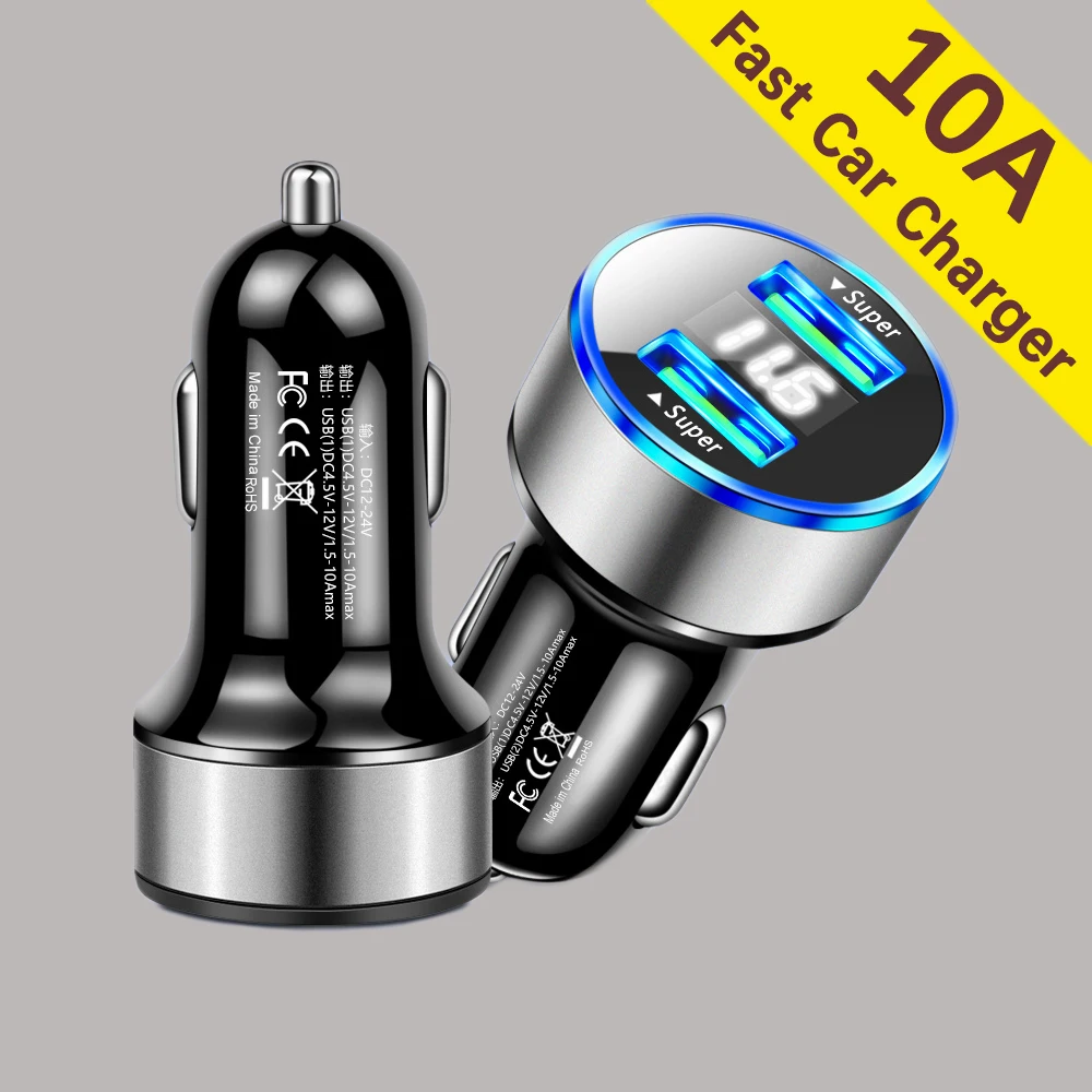 Cargador de coche USB 10A carga rápida 4,0 3,0 adaptador de puerto Dual para Huawei Xiaomi iPhone 12 13 14 Pro cargador de teléfono de coche de carga rápida