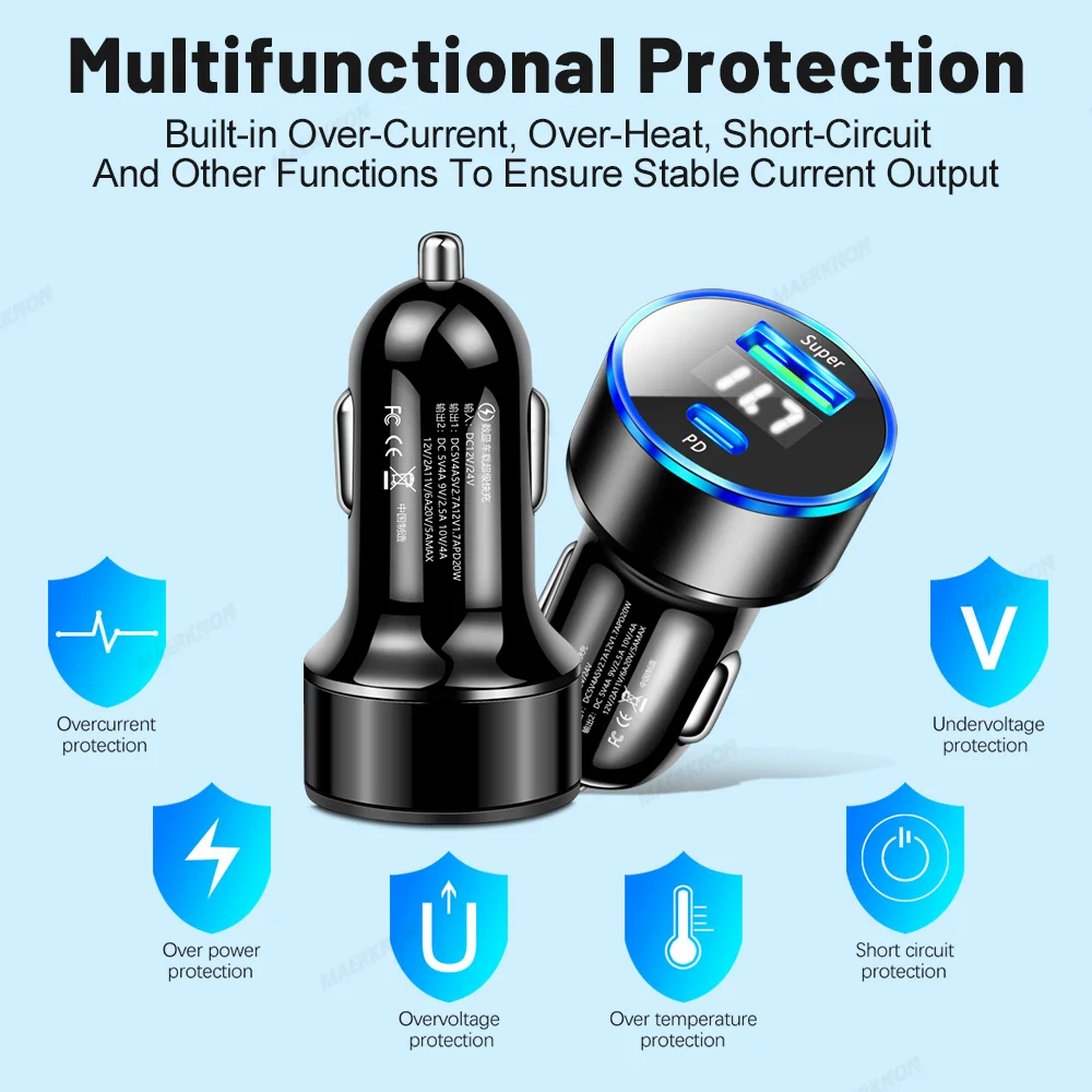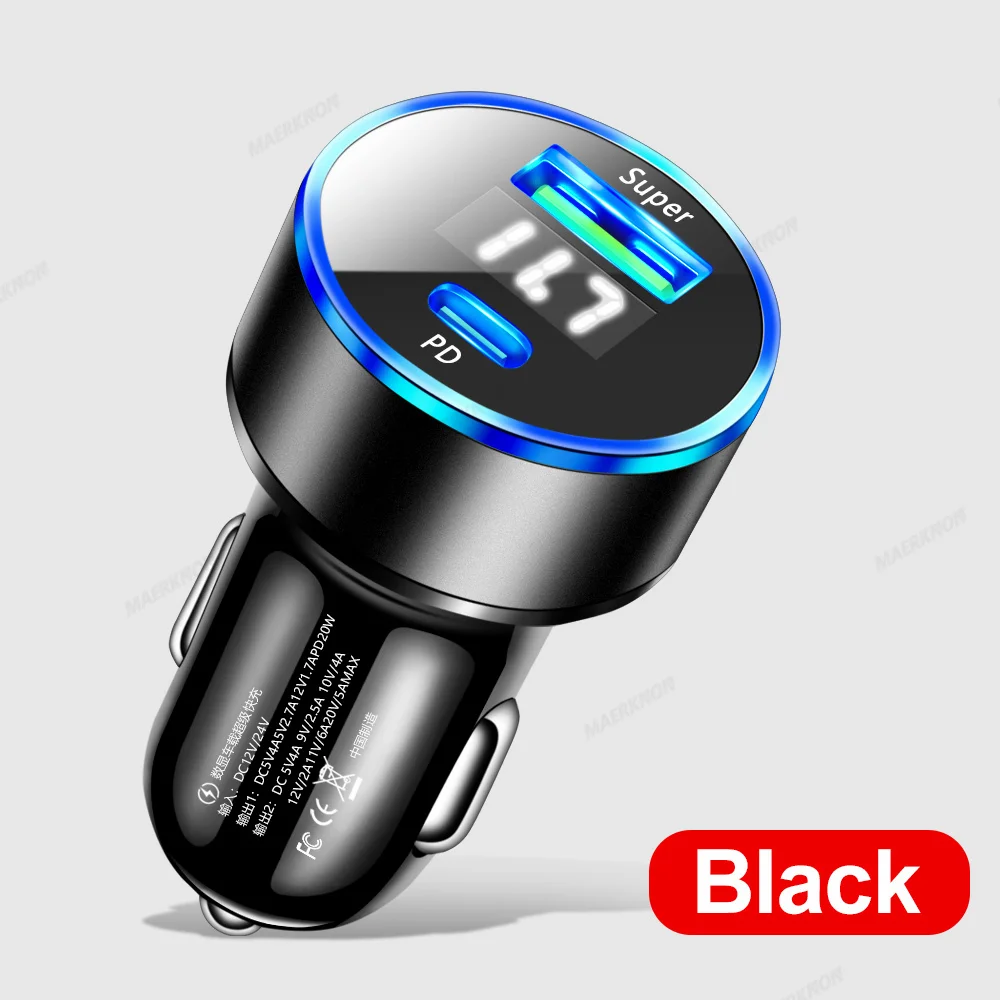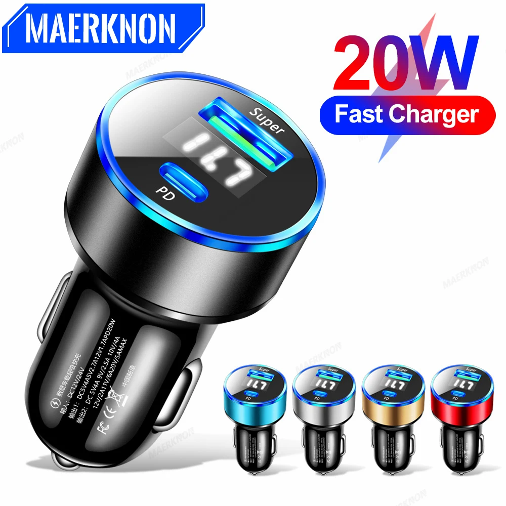 Comprar Cargador USB de carga rápida para coche, adaptador de teléfono tipo C PD, 20W, 3,0, para iPhone 14, 13, Xiaomi, Huawei, Samsung
