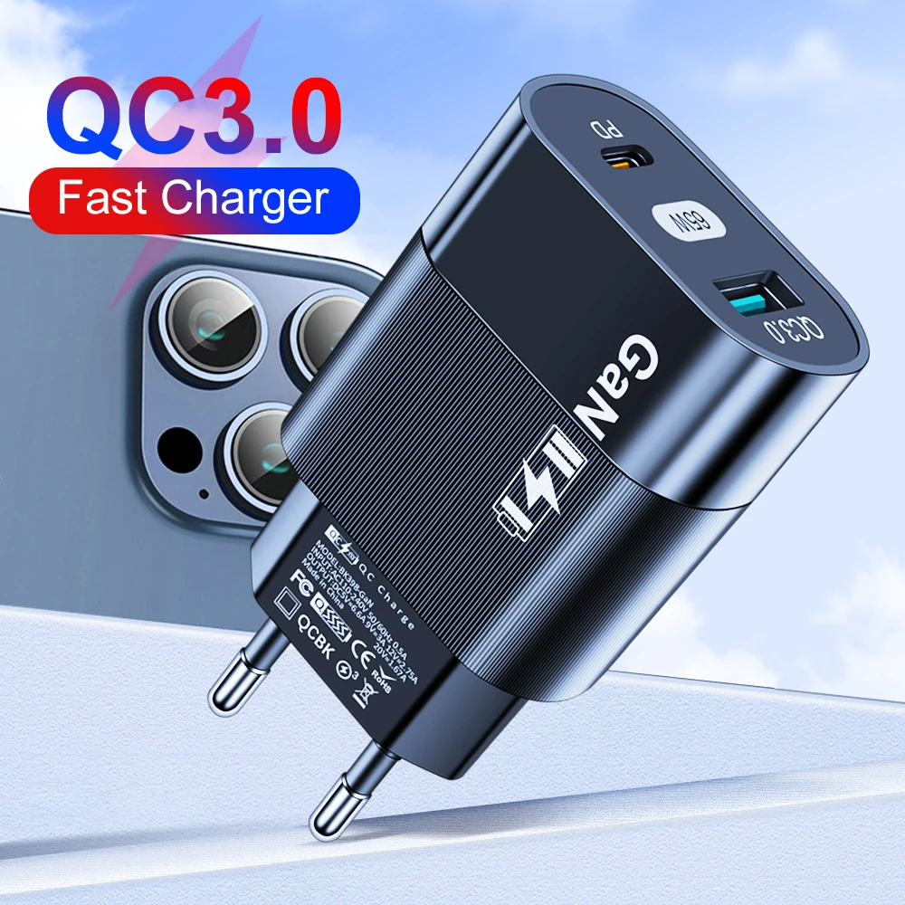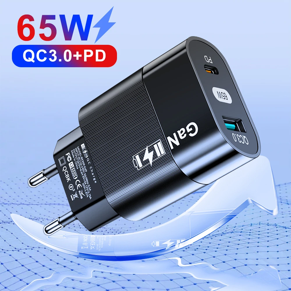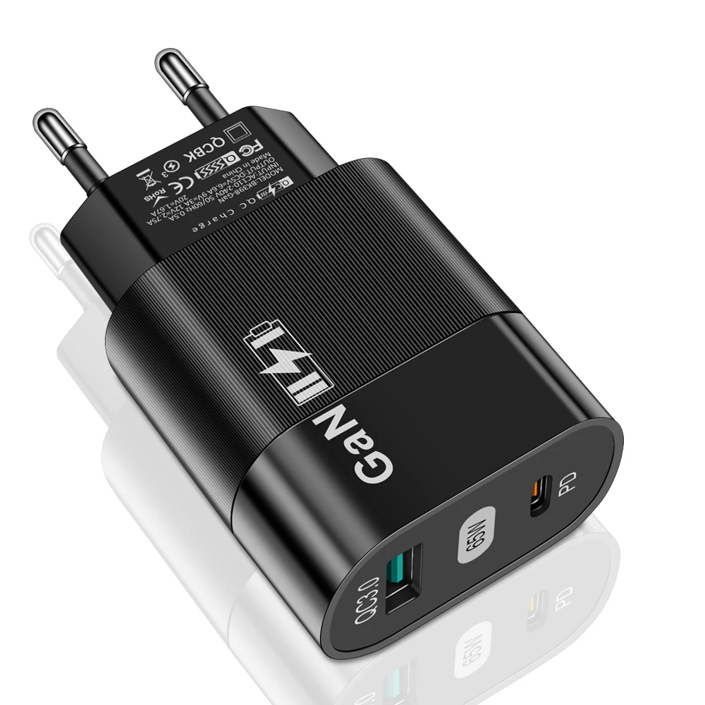 Cargador USB de carga rápida GaN PD de 65W, adaptador de pared tipo C QC3.0 para iPhone 15, Xiaomi, Samsung, cargador portátil para tableta y teléfono móvil