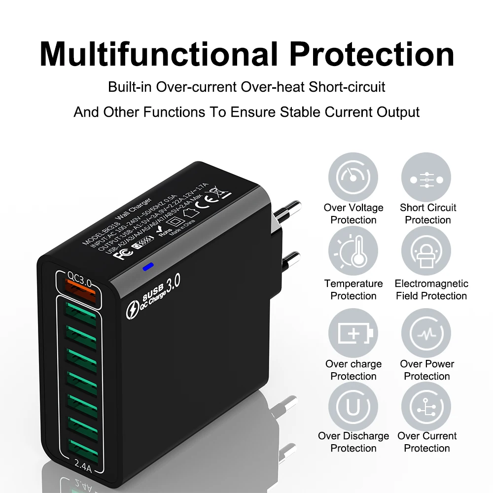 ⚡⚡⚡ Salida verde USB-A2/A3/A4/A5/A6/A7/A8: 5V 2,4A