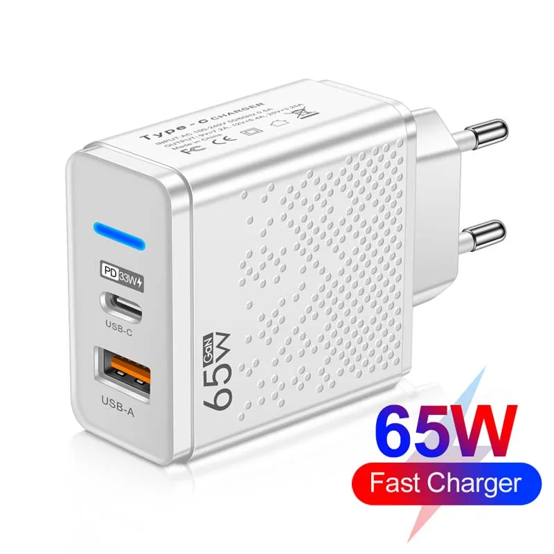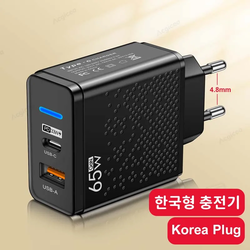 Cargador USB PD3.0 de 65W, adaptador de carga rápida para iPhone Samsung KR/EU/US/UK, cargador de pared para teléfono móvil, cargador USB tipo C