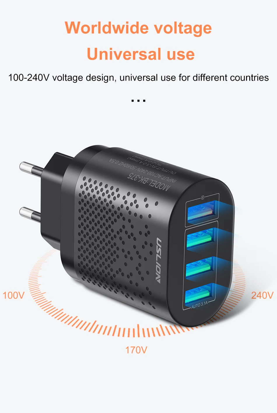 Comprar Cargador USB de carga rápida para teléfono móvil, adaptador Universal de pared, 3A, 48W, UE, EE. UU., para iPhone, Samsung y Xiaomi