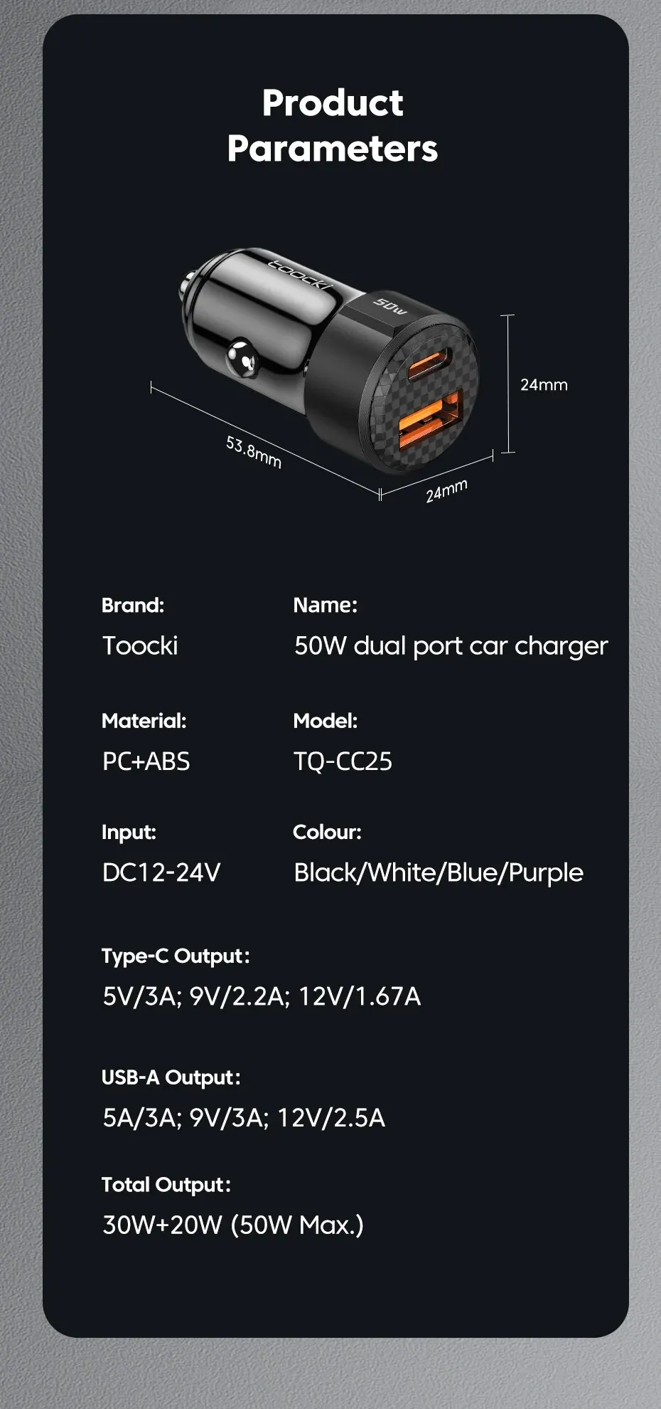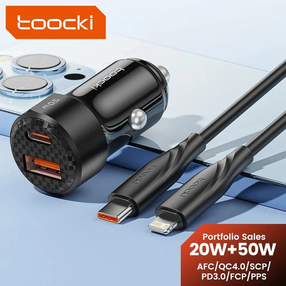Comprar Cargador USB para coche Toocki, cargador USB tipo C, mini cargador rápido FCP SCP USB PD para Xiaomi 12, iPhone 13, POCO, cargador de teléfono para coche, 12V, 24V